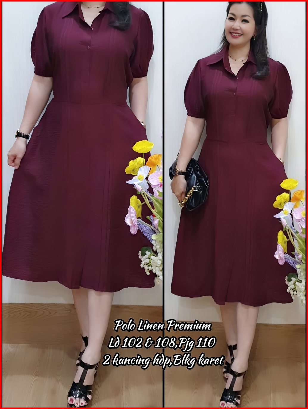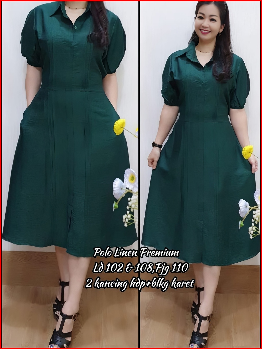 Jess Dress Midi Korea Dress Wanita Polo Linen Gaun Casual Pesta Formal