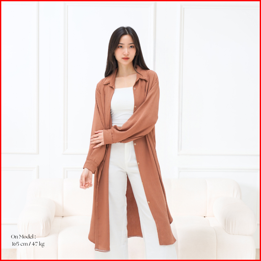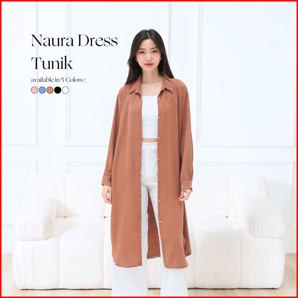 Welabelle Naura Dress Tunik Oversize Midi Dress Gaun Kemeja Lengan Panjang Jumbo D37
