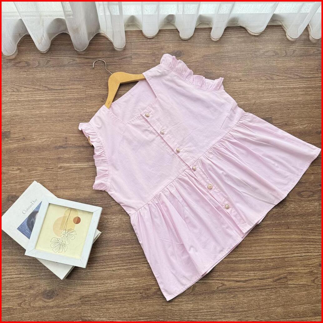 Candy Vest Ruffle Vest Katun Poplin Vest Wanita Kancing