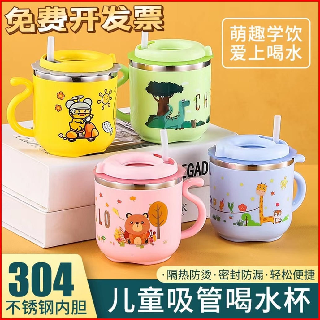 Sale Murah Banget Mug Gelas Anak Karakter Sedotan Stainless Steel 304 Straw Mug Mug Lucu Childrens Leak-proof Cups Child