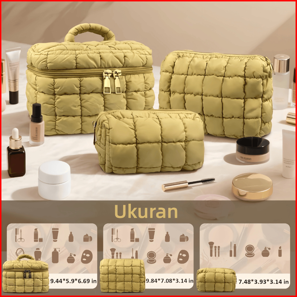 Feybaul Set Tas Kosmetik Berlapis 3 Bagian Tas Penyimpanan Kosmetik Berbahan Empuk Tas Kosmetik Wanita C030