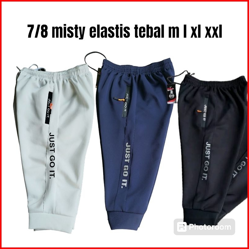 Celana Running Pria Olahraga Gym Fitnes Aerobic Misty Tebal Joger 7 8 Hitam