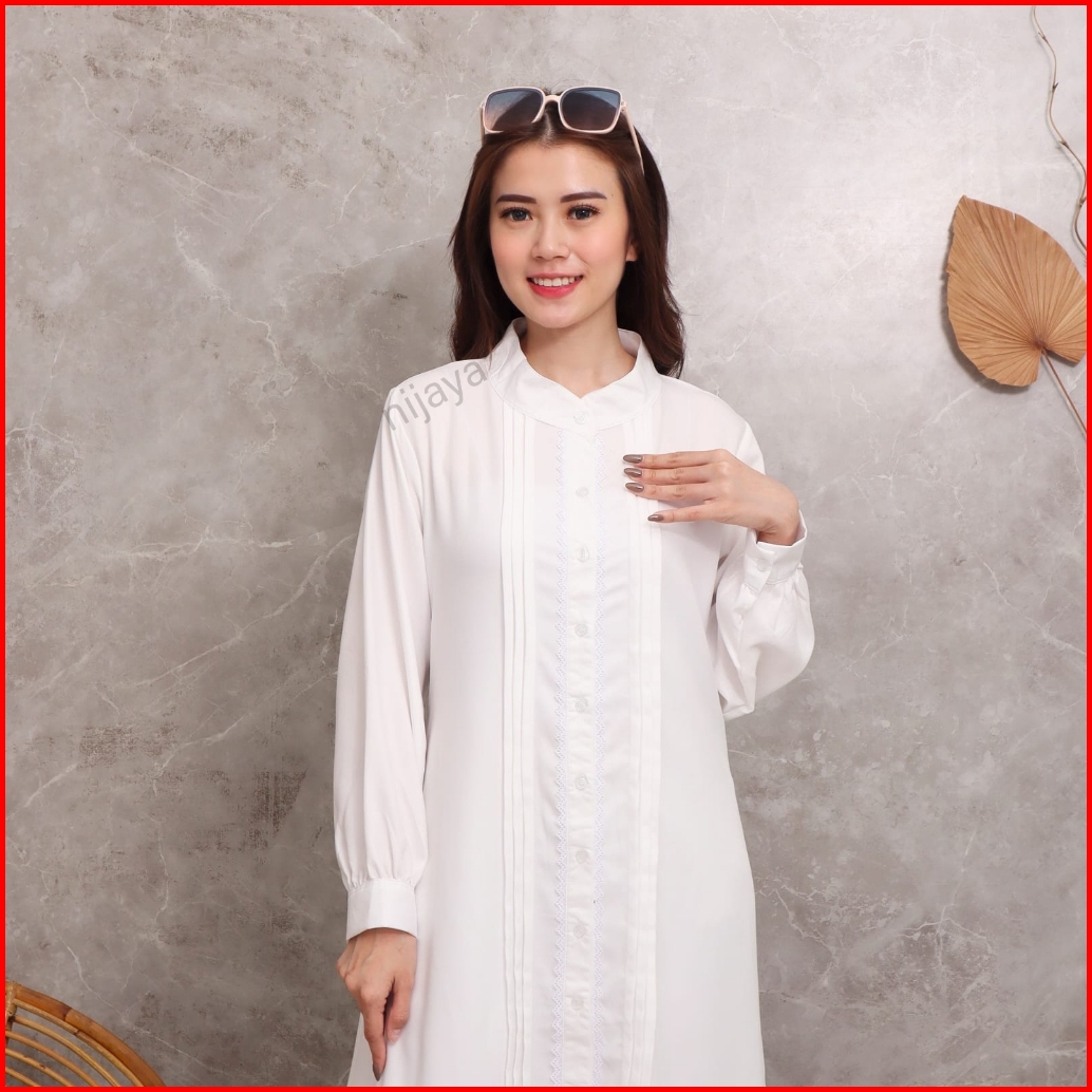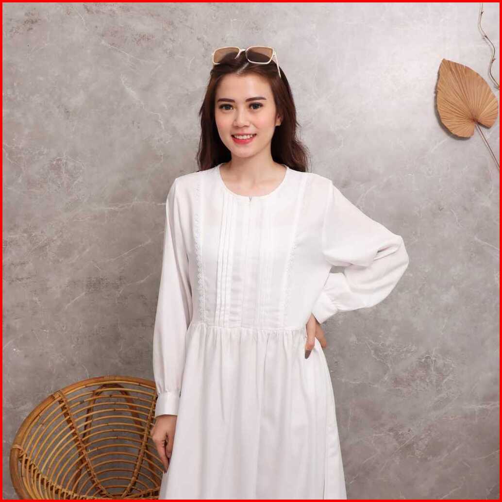 Elastra - Gamis Dress Putih Polos Fit To Xl Gamis Dress Maxi Polos Gamis Simple Elegan