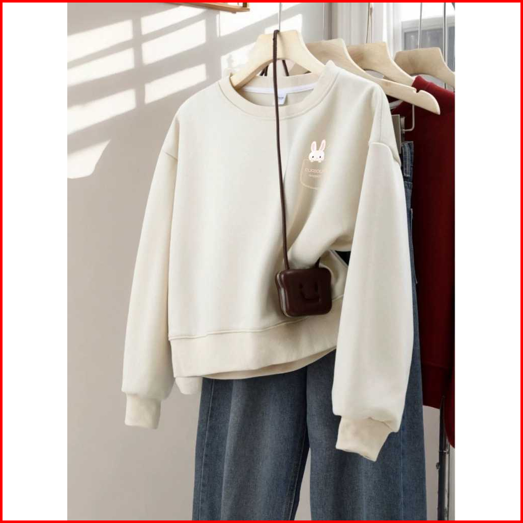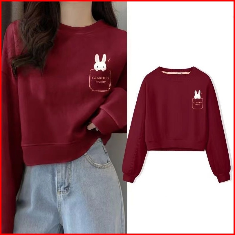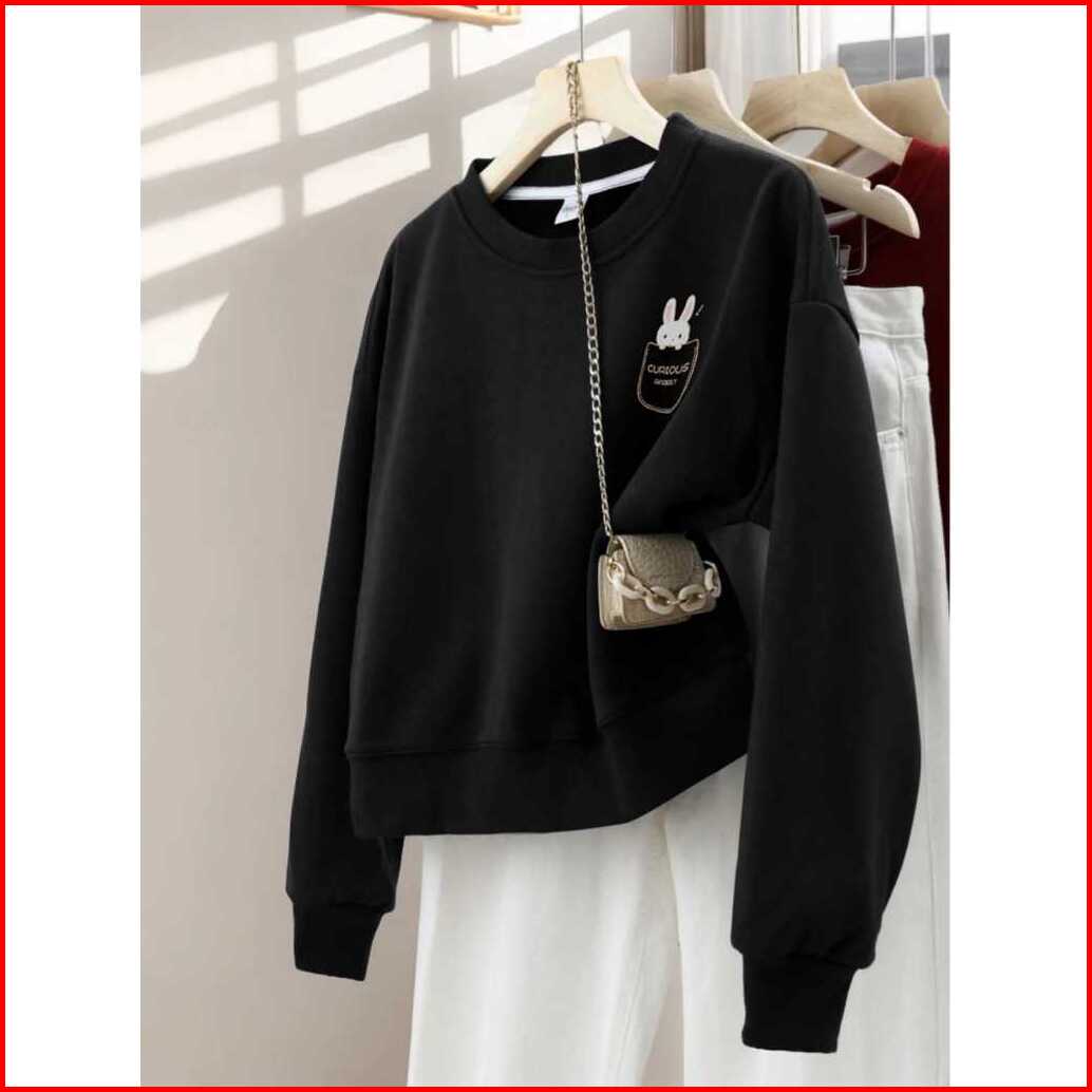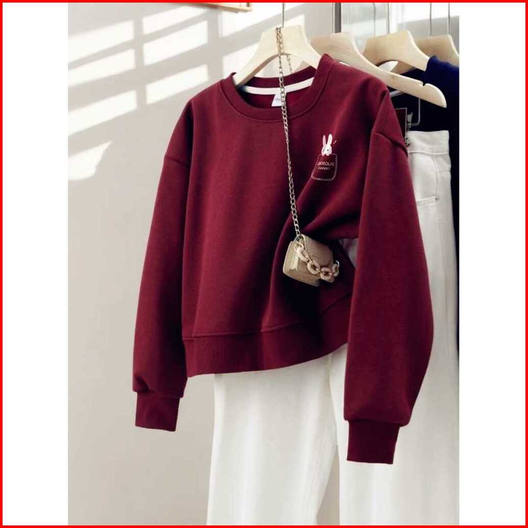 Sweater Crewneck Crop Sablon High Quality Tebal Bahan Fleece Premiun Tebal Gramasi 280 Gsm Korean Style