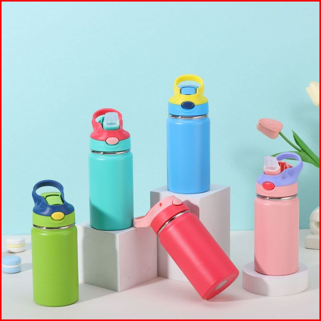 Tumbler Termos Flip Silicone Straw 350 Ml Botol Minum Anak Dewasa Dengan Sedotan Dan Handle Vacuum Cup Insulated Bottle