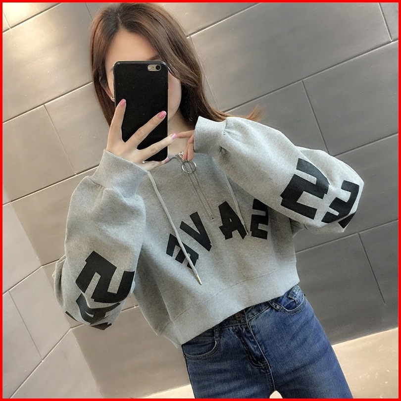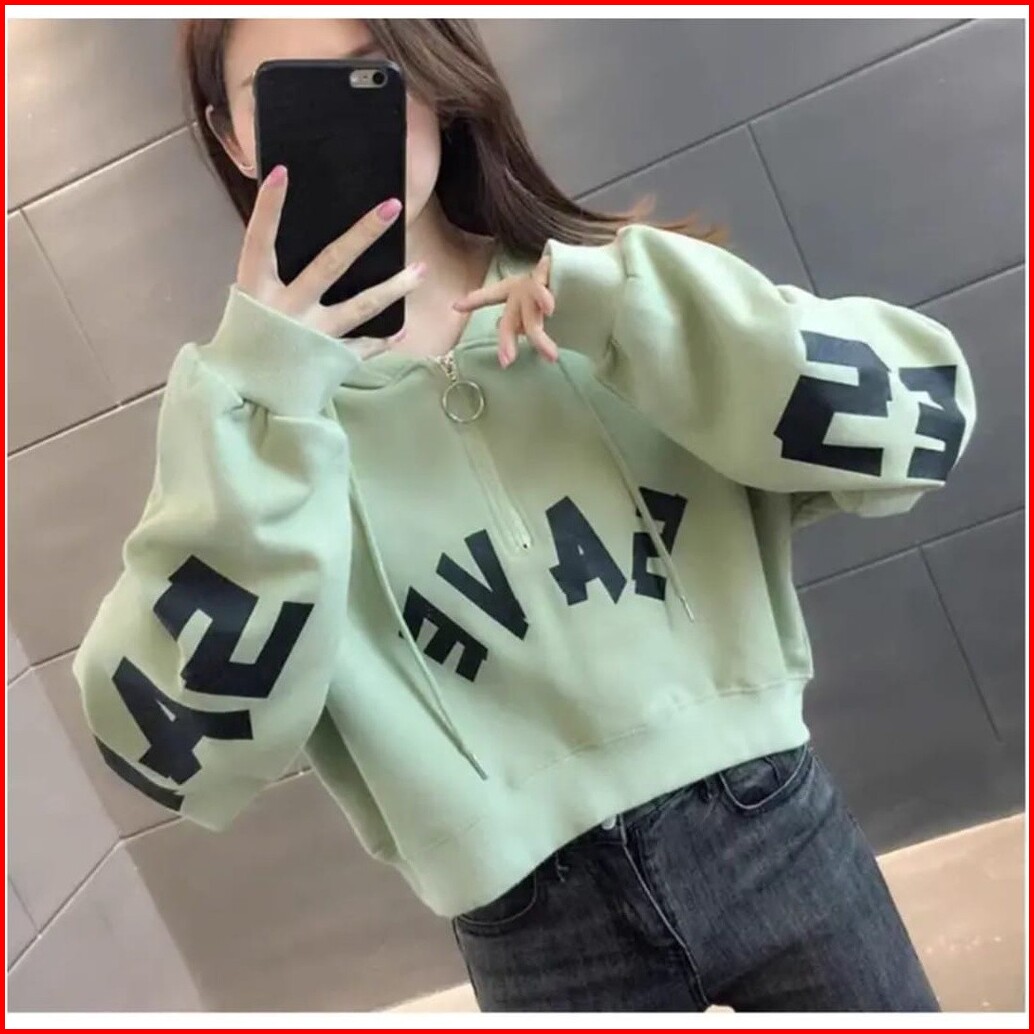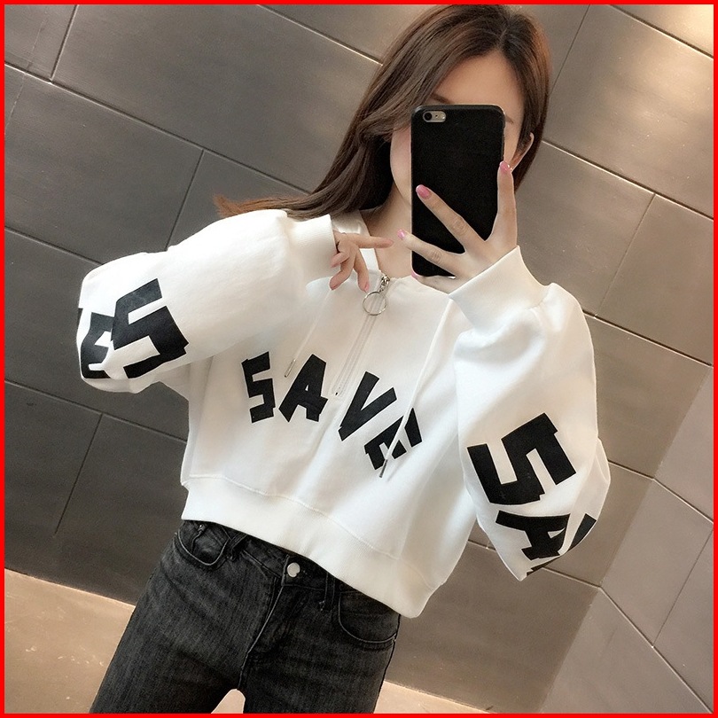 Hoodie Crop Save Croope Hodie Zipper Sweater Sweater Crop Top Wanita