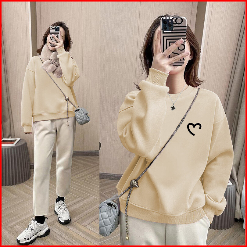 Sweater Crewneck Love Bahan Fleece Premium Tebal Gramasi 280 Gsm Sweater Pria Wanita Lengan Panjang Korean Style