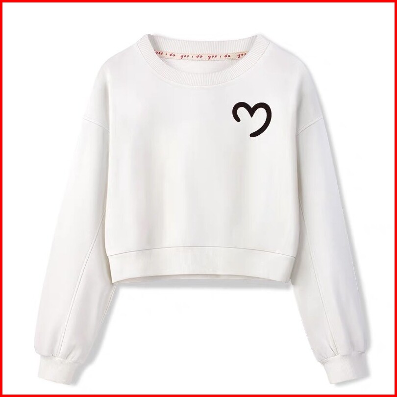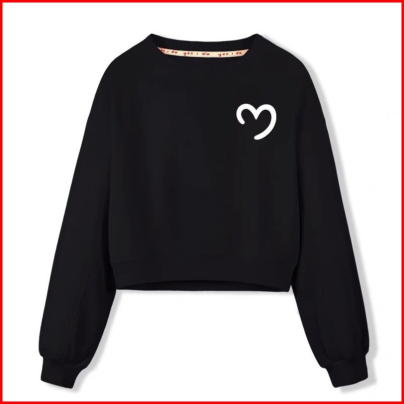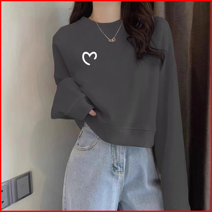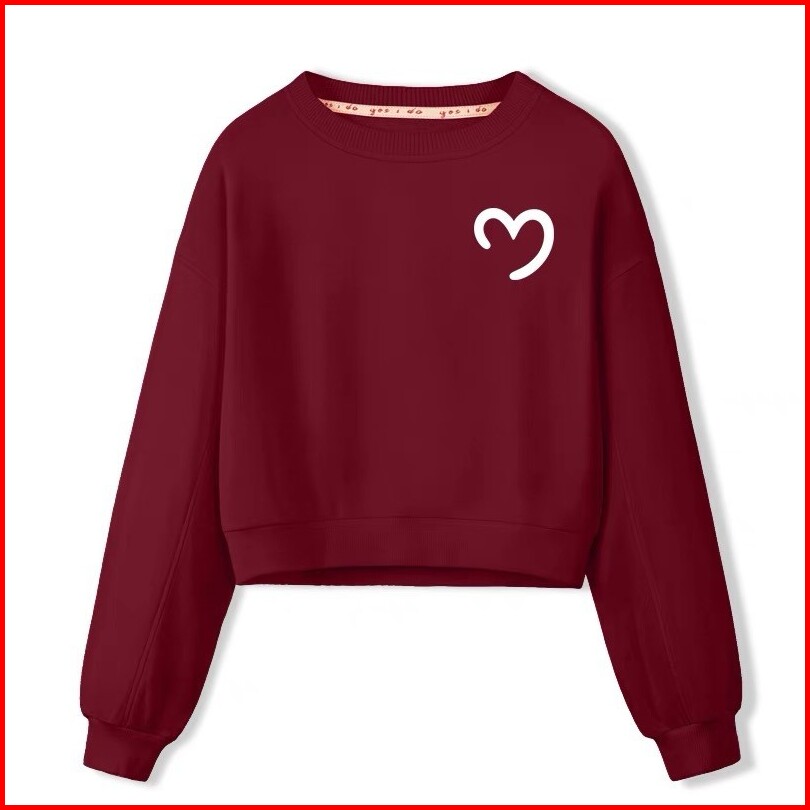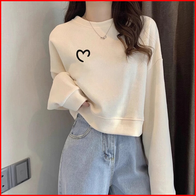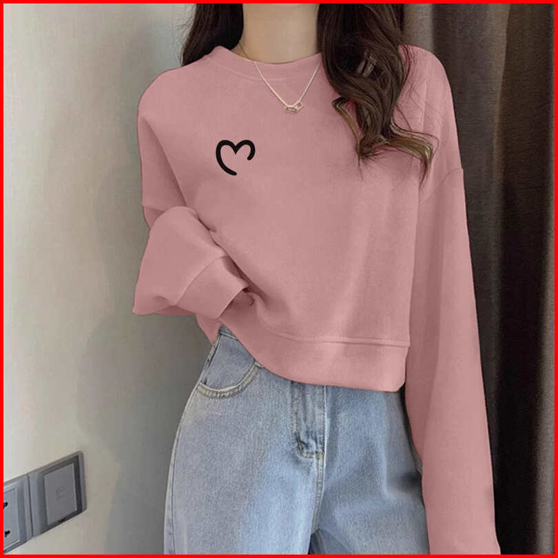 Sweater Crewneck Crop Love Bahan Fleece Premium Tebal Gramasi 280 Gsm Korean Style Baju Wanita Lengan Panjang