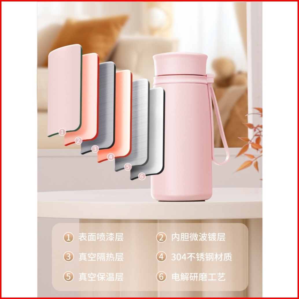 Tumbler Termos Saringan Dan Tali 300 Ml Portable Vacuum Cup Insulated Bottle Hot Cool Stainless Steel 304 Coffee Tumbler