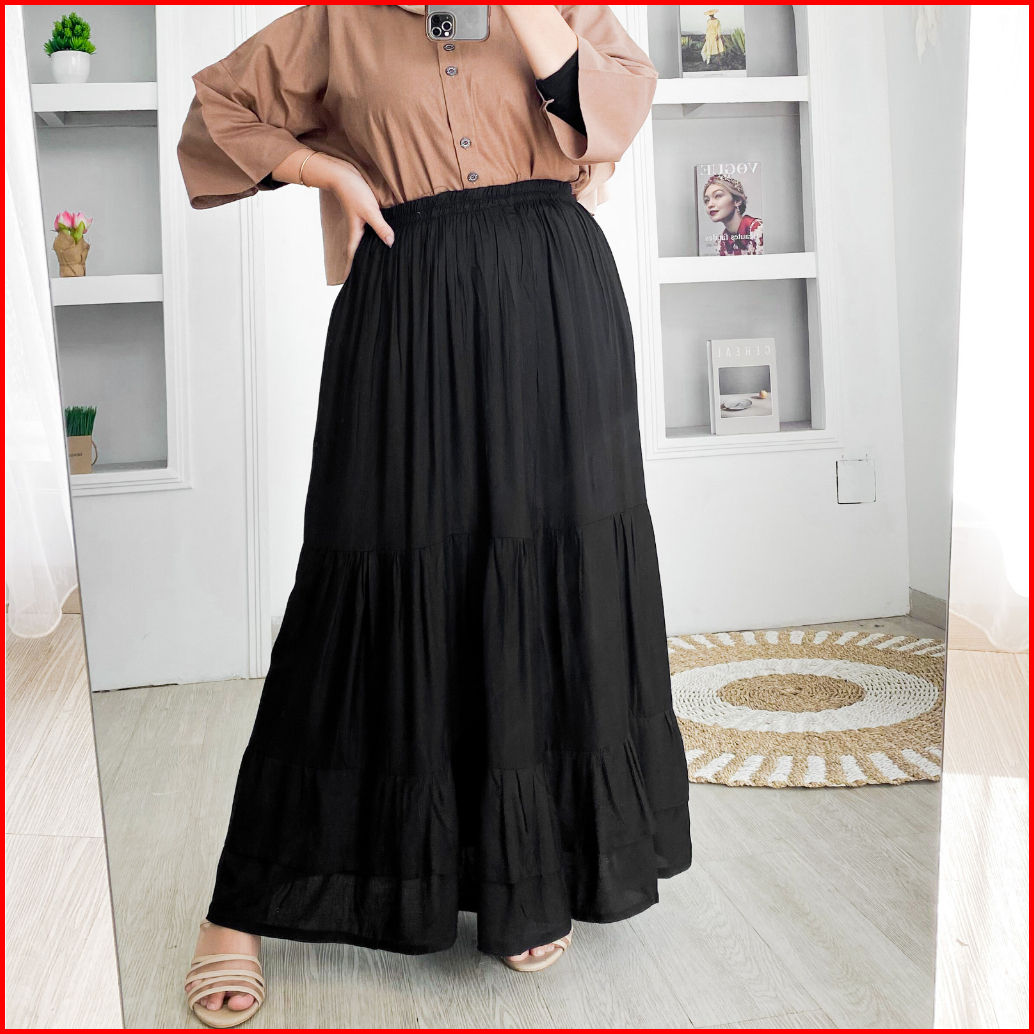 Kawai Skirt Bawahan Rok Wanita Fashion Muslim Basic Remple Matt Katun Rayon Polos Ootd Remaja Casual Daily Terlaris