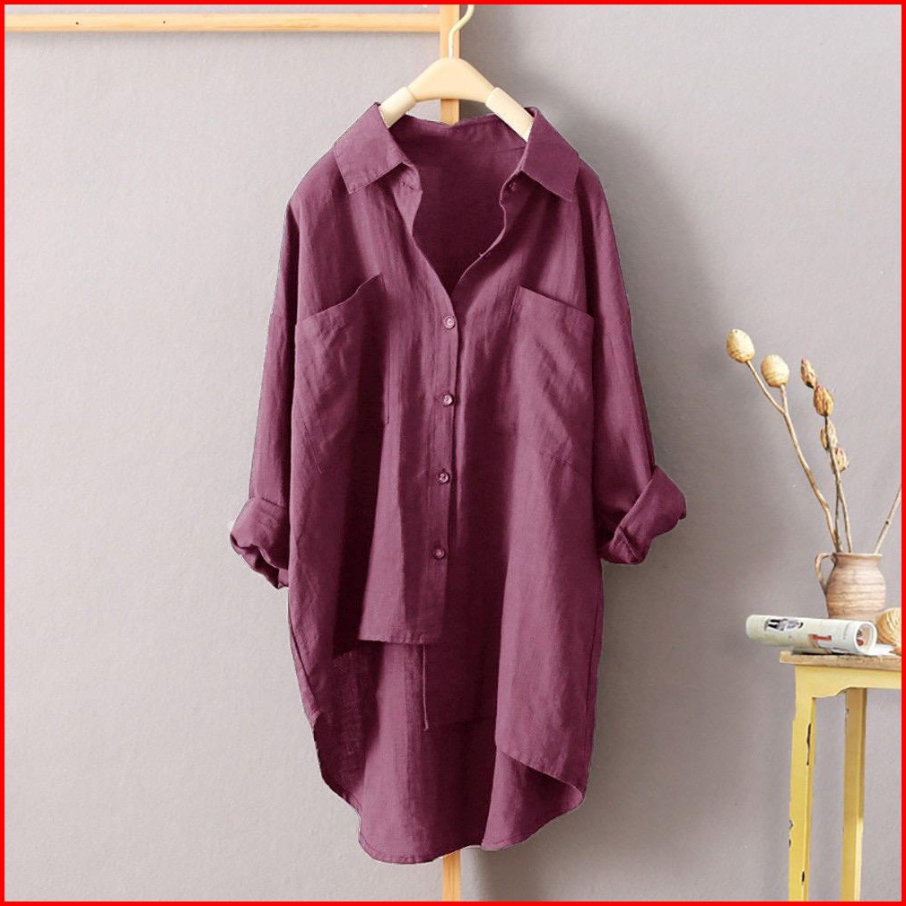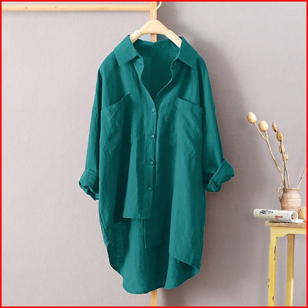 Baju Atasan Wanita Modern Long Sleeve Assymetric Bahan Linen Premium Baju Blouse Atasan Fashion Wanita Lengan Panjang Te