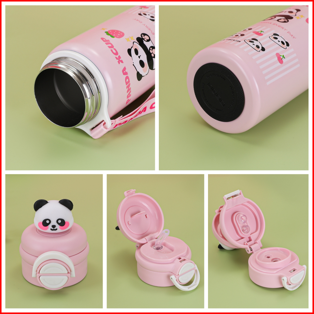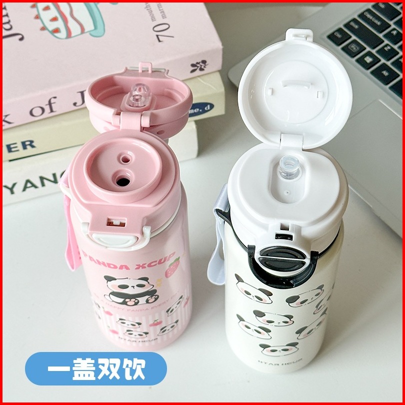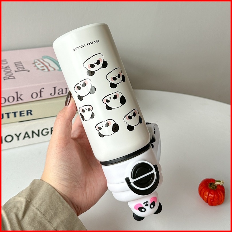Premium Tumbler Termos Panda Cup Party Sedotan Dan Tali 600 Ml Portable Vacuum Cup Insulated Bottle Hot Cool Stainless S