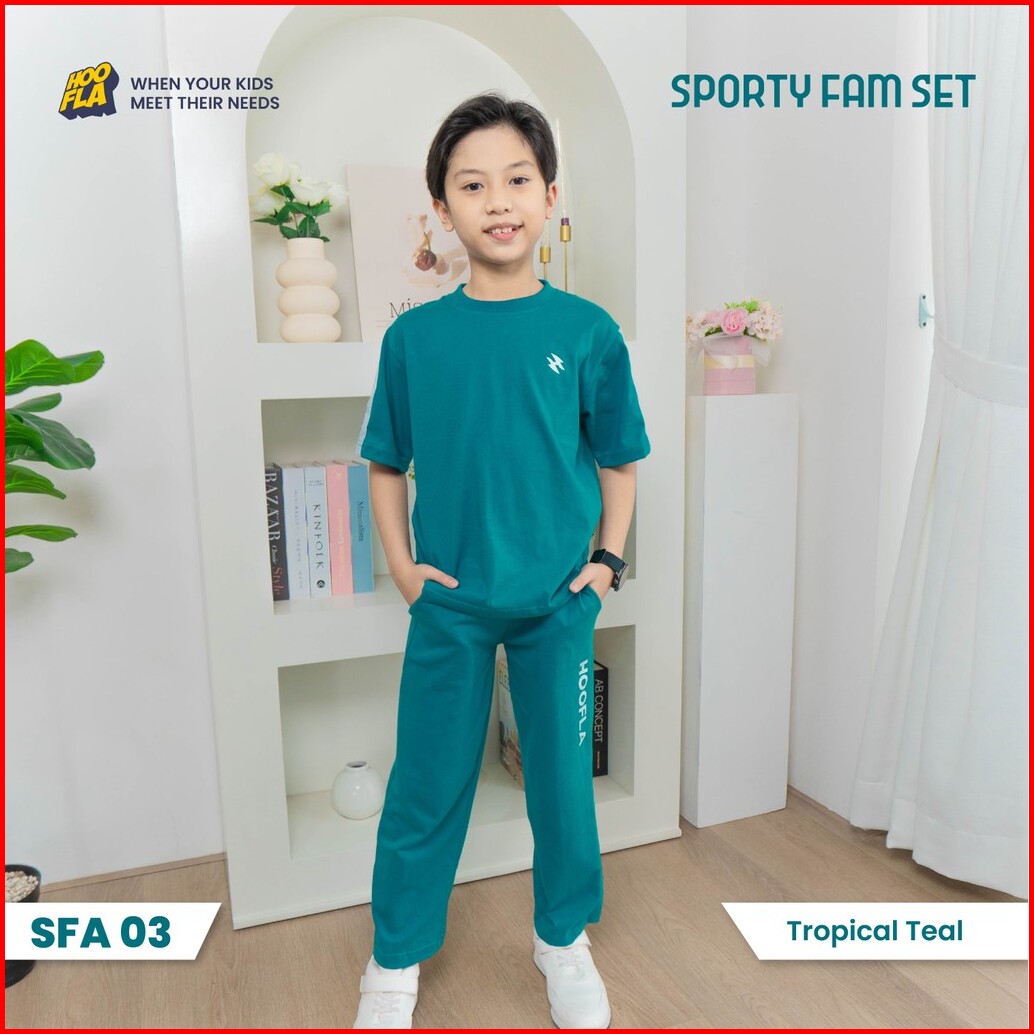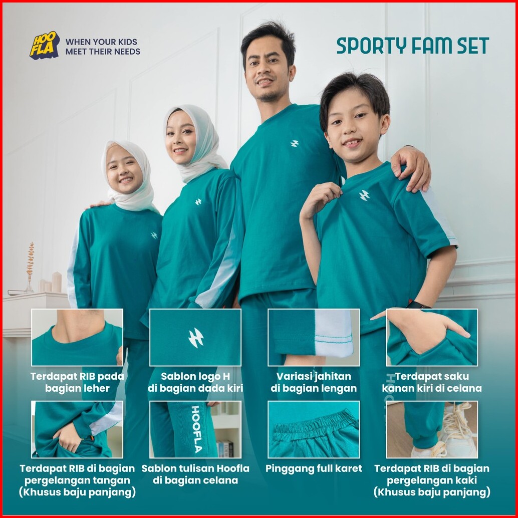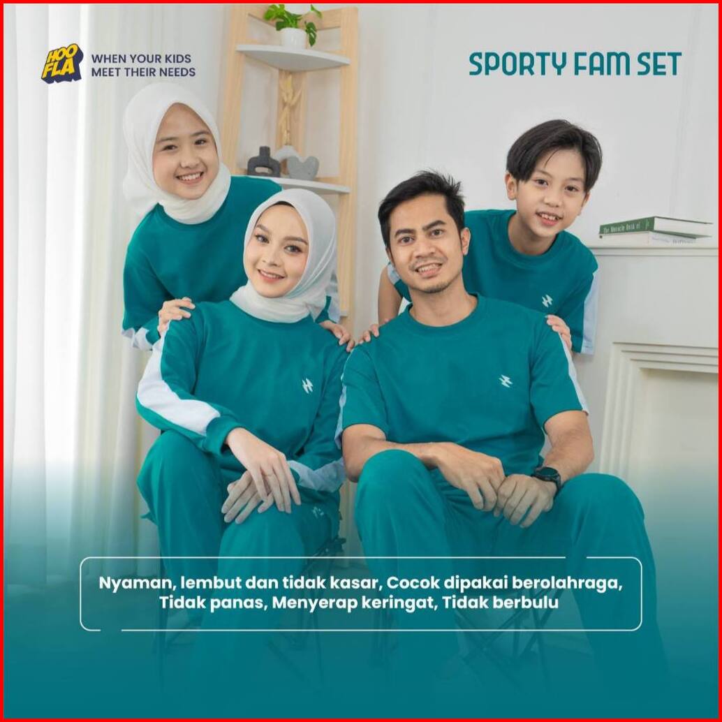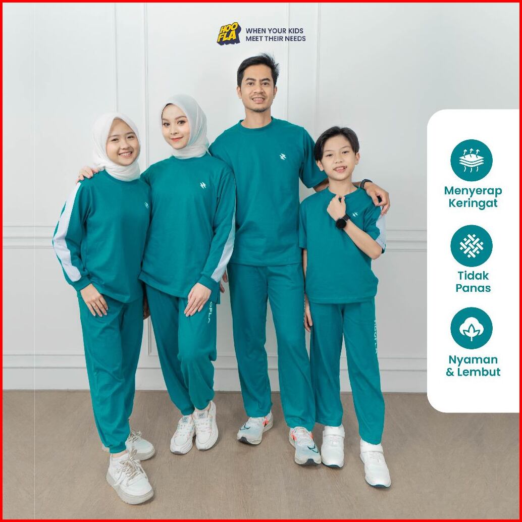Hoofla Setelan Couple Keluarga Baju Olahraga Sporty Fam Set Tropical Teal