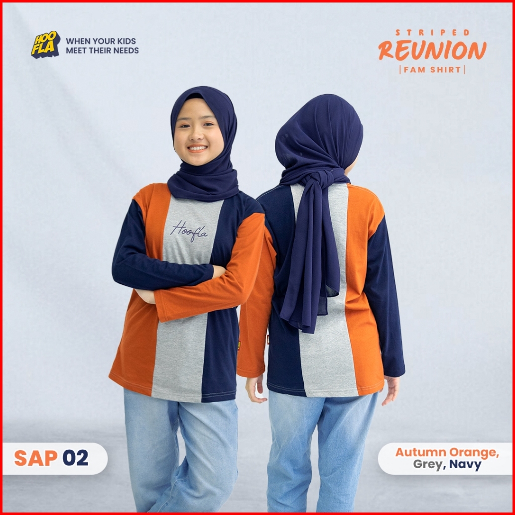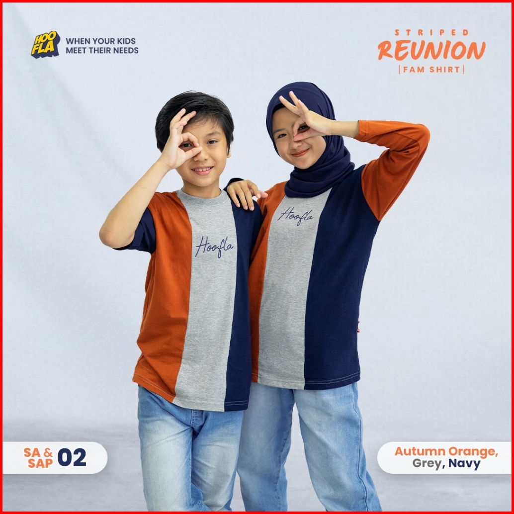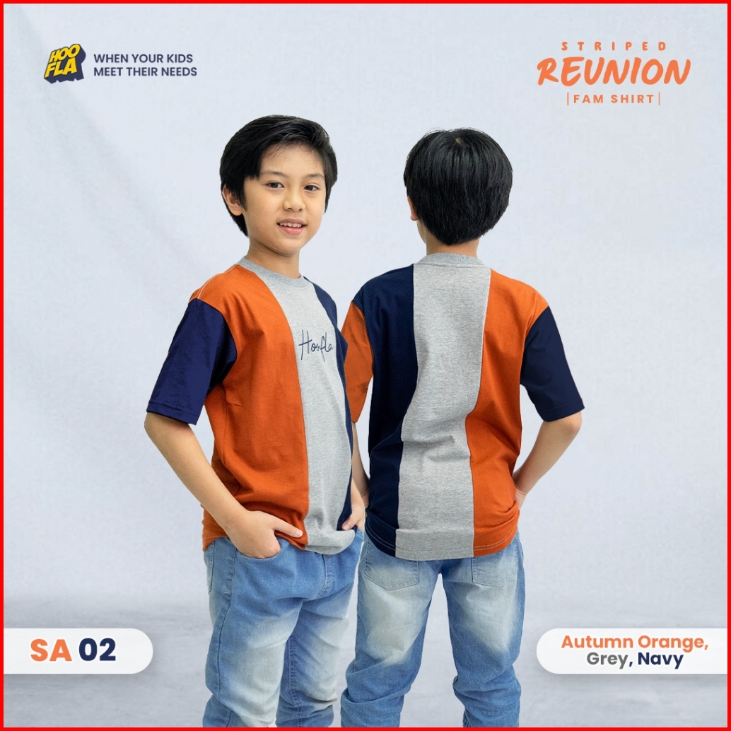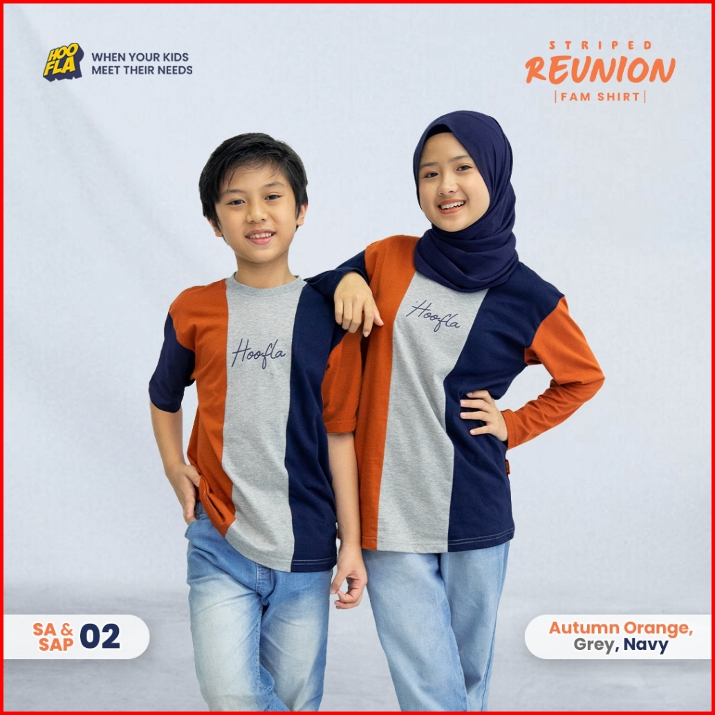 Hoofla Kaos Couple Anak 3-12 Tahun Baju Casual Striped Reunion Fam Shirt Auntumn Orange