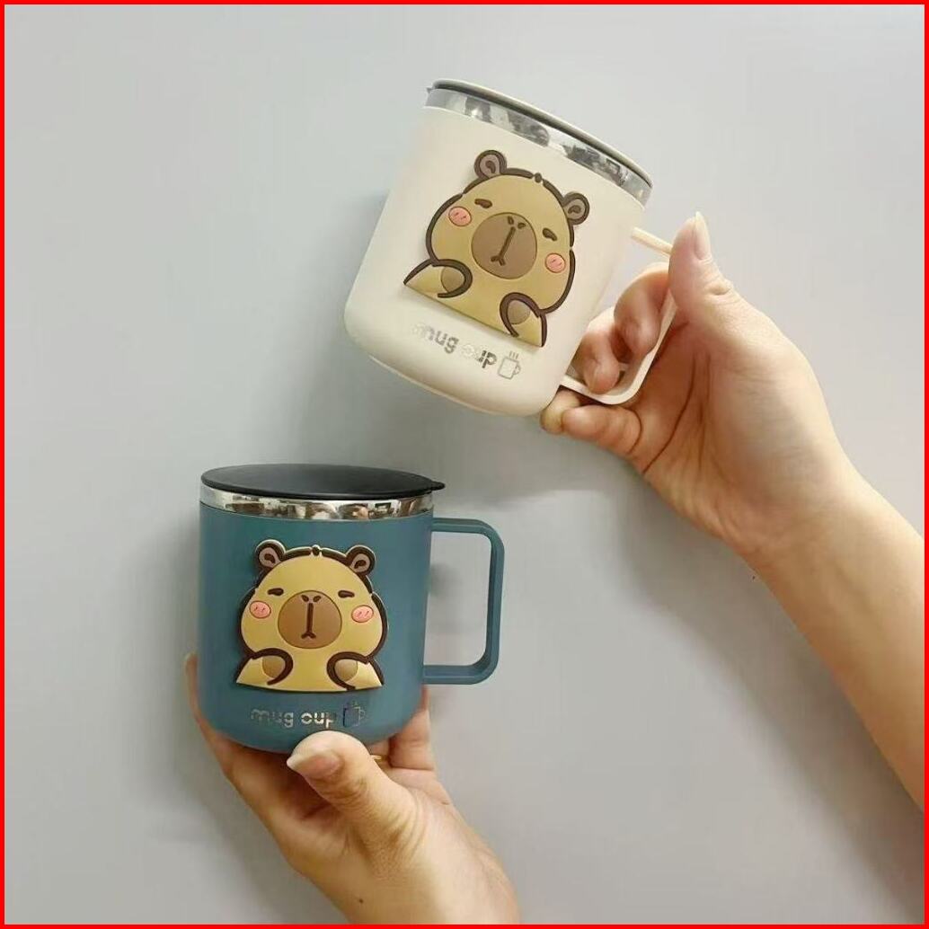 Mug Gelas Anak Dewasa Motif Capybara 400 Ml Stainless Steel 304 Mug Lucu