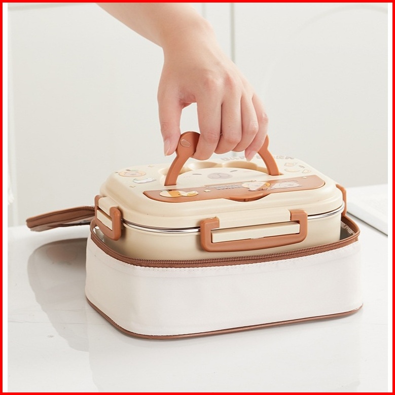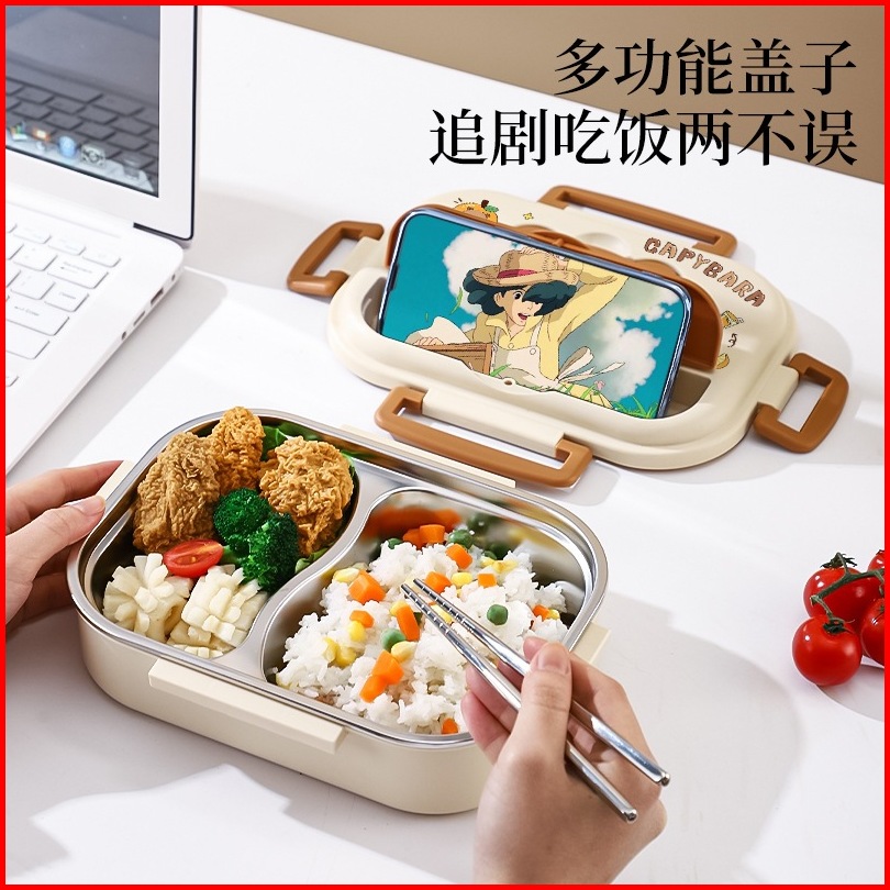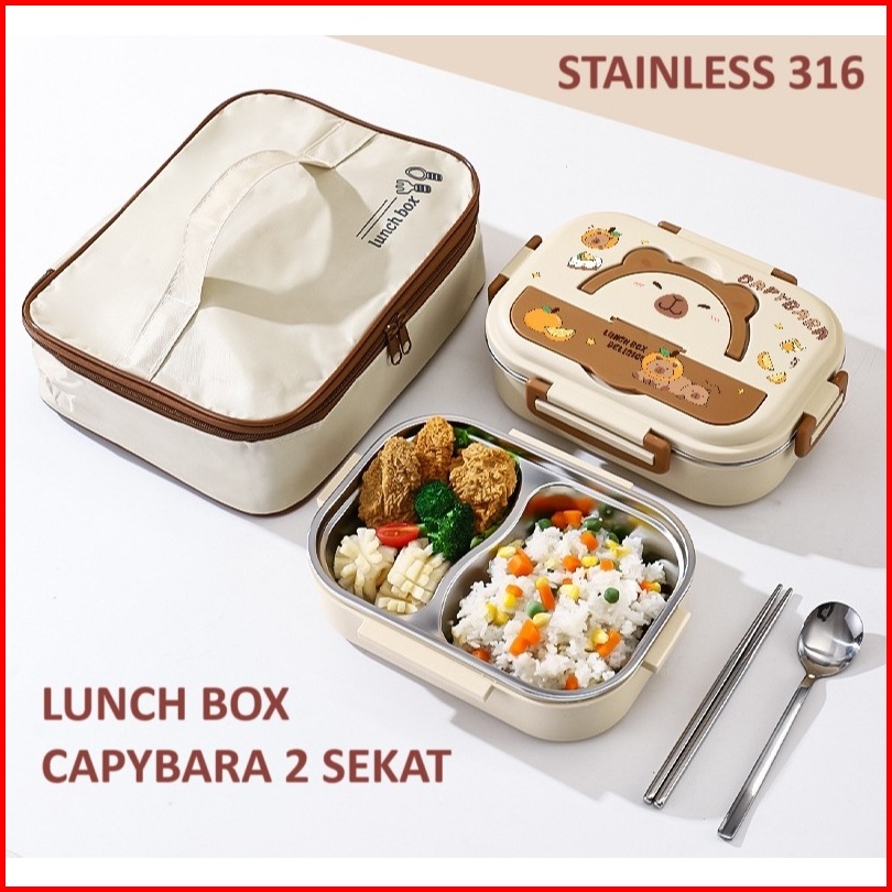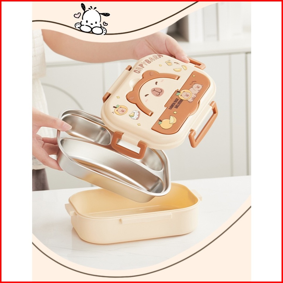 Lunch Box Viral Cute Capybara Stainless 316 Kotak Makan Sekat Tahan Panas Dan Anti Tumpah Tempat Makan Bekal Anak Sekola