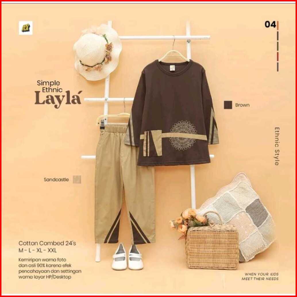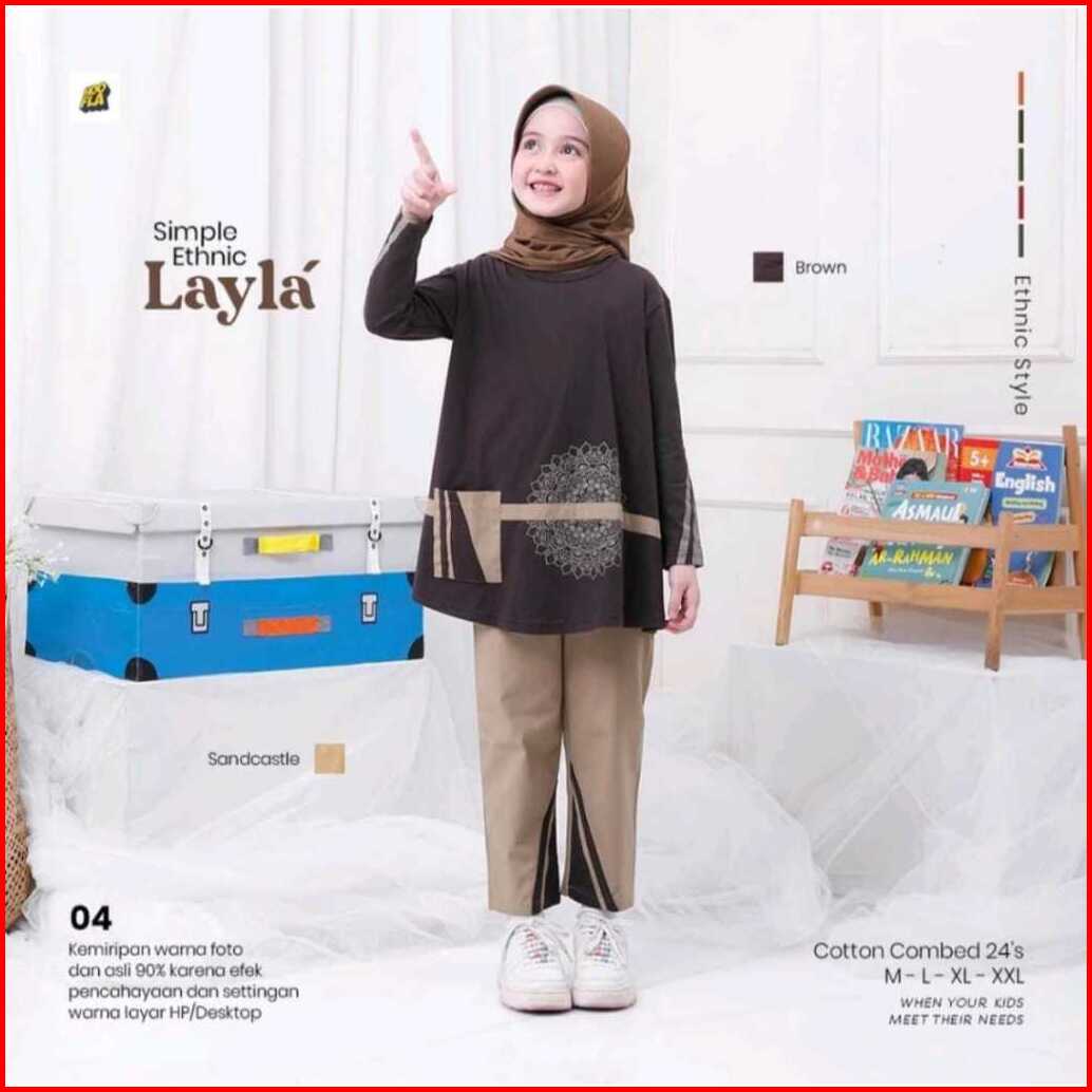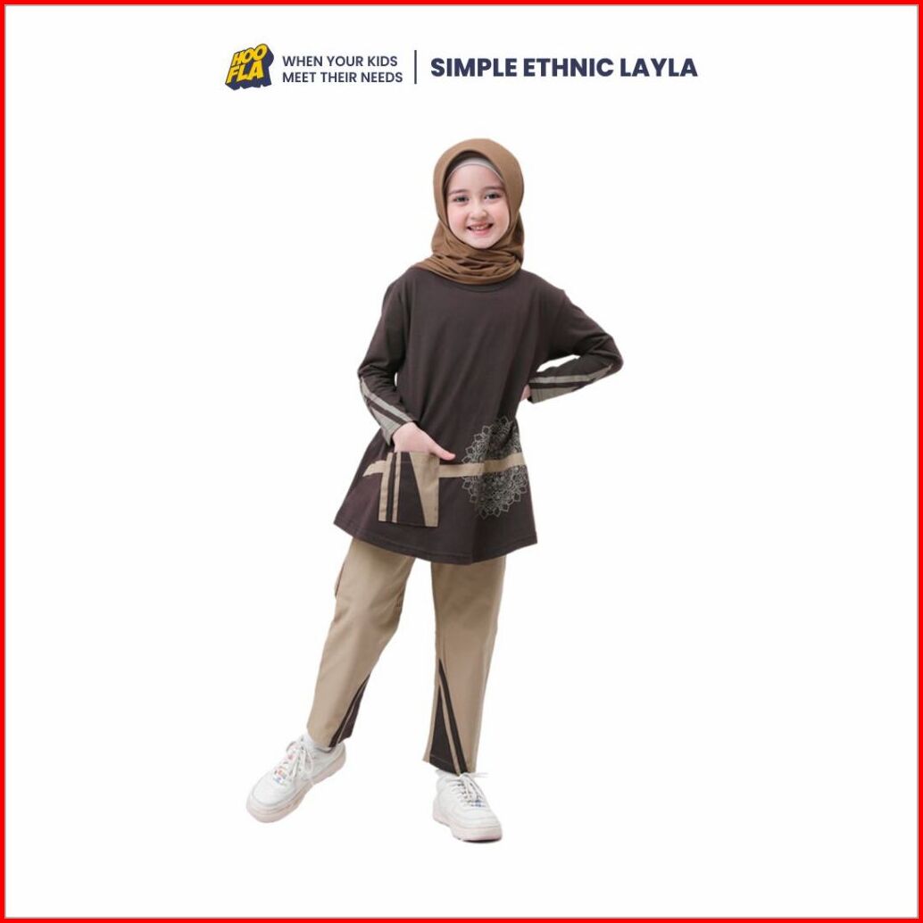 Hoofla Simple Ethnic Layla Qais Baju Muslimah Anak 5-12 Tahun Setelan Casual Brown
