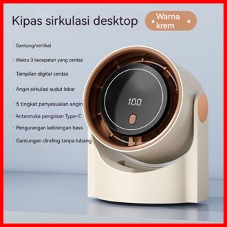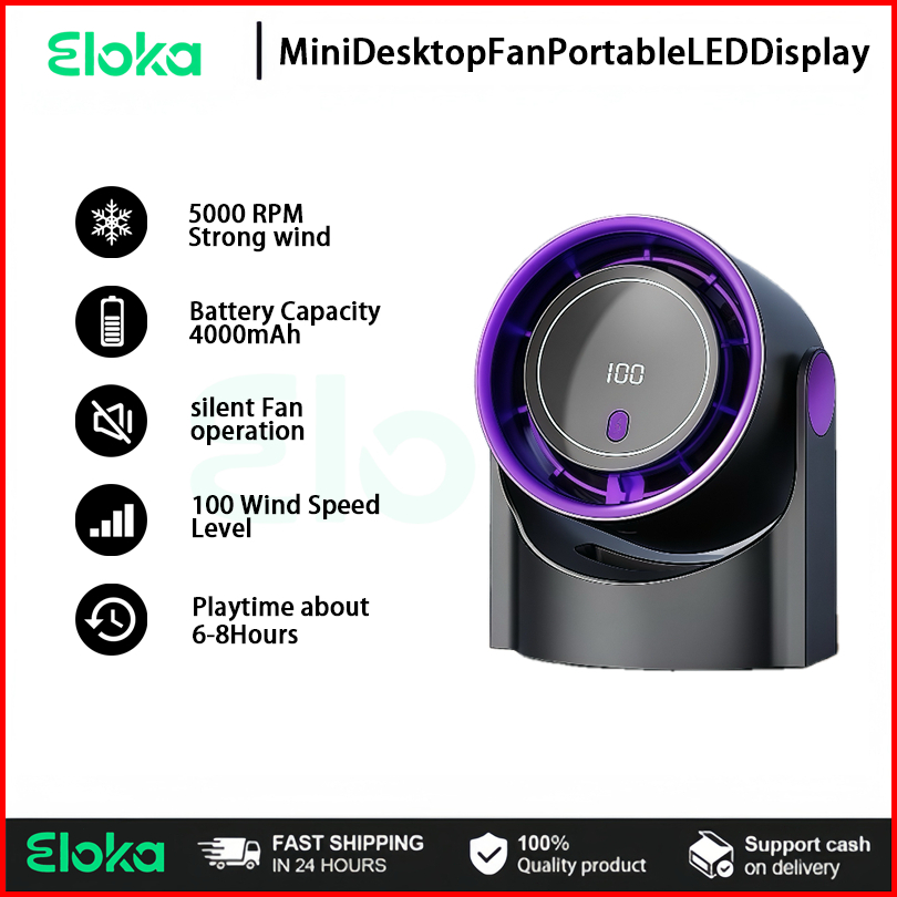 Eloka 4000mah Kipas Mini Desktop 100 Kecepatan Portabel Kipas Angin Turbo Berkecepatan Tinggi Led Layar Sentuh Kipas Min