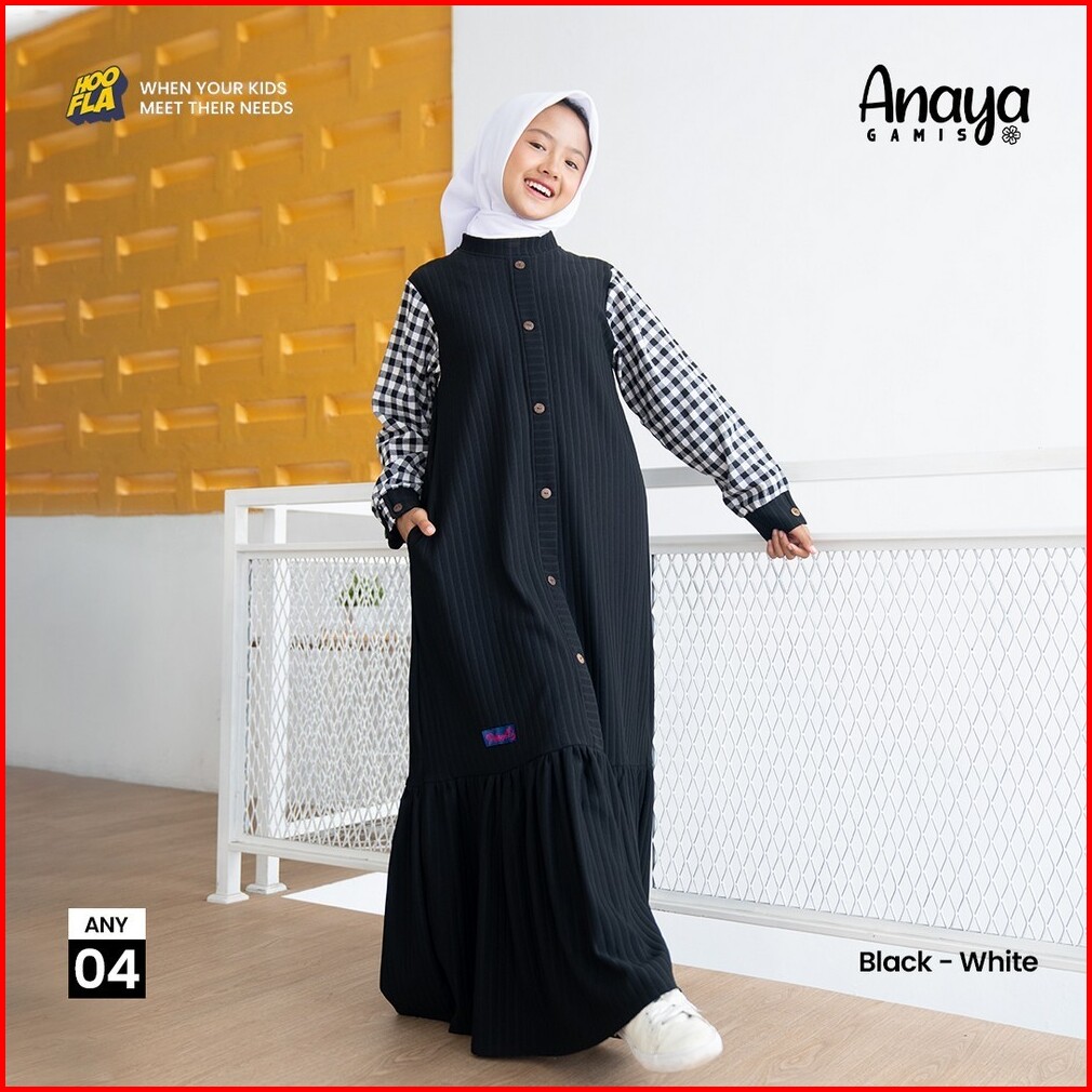 Hoofla Anaya Gamis Anak Perempuan 5-12 Tahun Muslimah Black White
