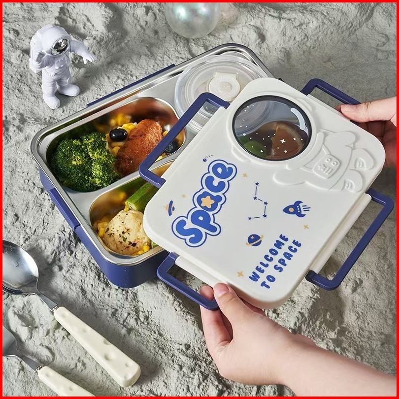 Lunch Box Space Astronaut Stainless 201 Kotak Makan Sekat Tahan Panas Dan Anti Tumpah Tempat Makan Bekal Anak Sekolah