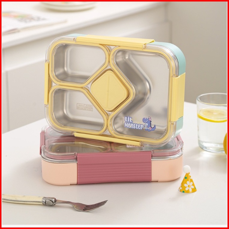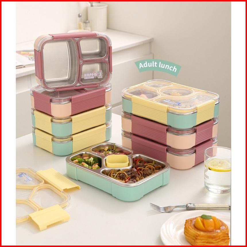 Premium Lunch Box Sekat Happy Unicorn Little Monster Stainless 304 Kotak Makan Sekat Tahan Panas Dan Anti Tumpah Tempat
