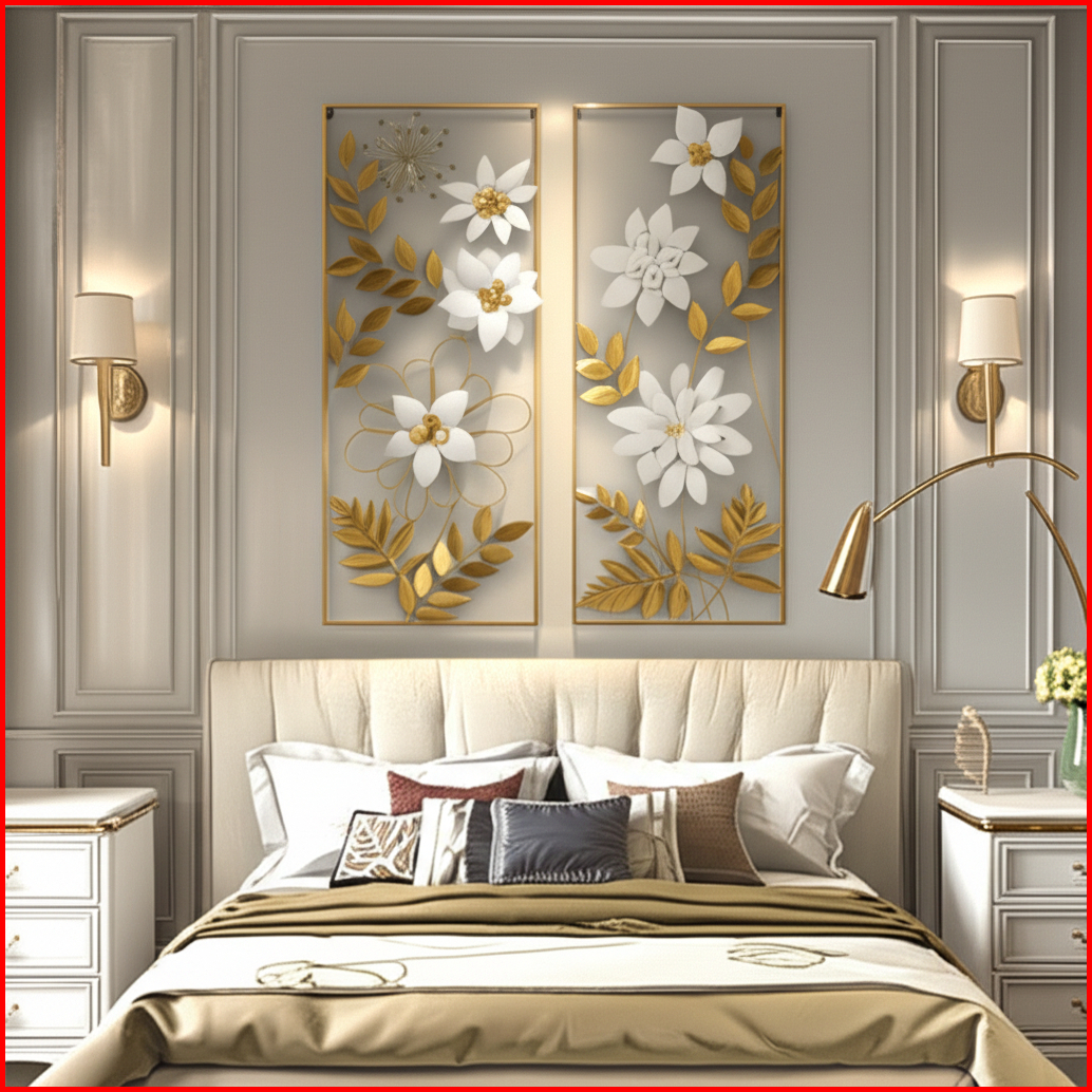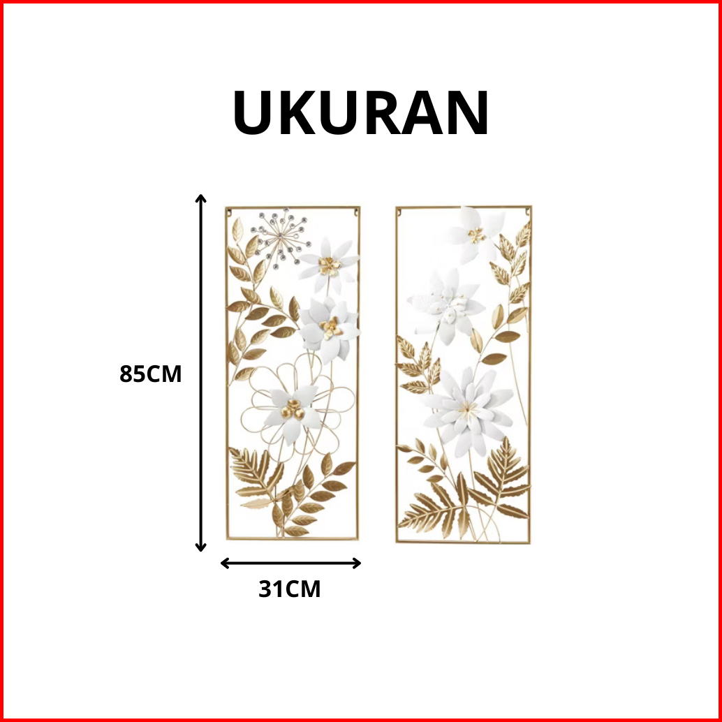 Hiasan Dinding Besi Aesthetic 1 Set Isi 2 Melati Putih 85x31cm