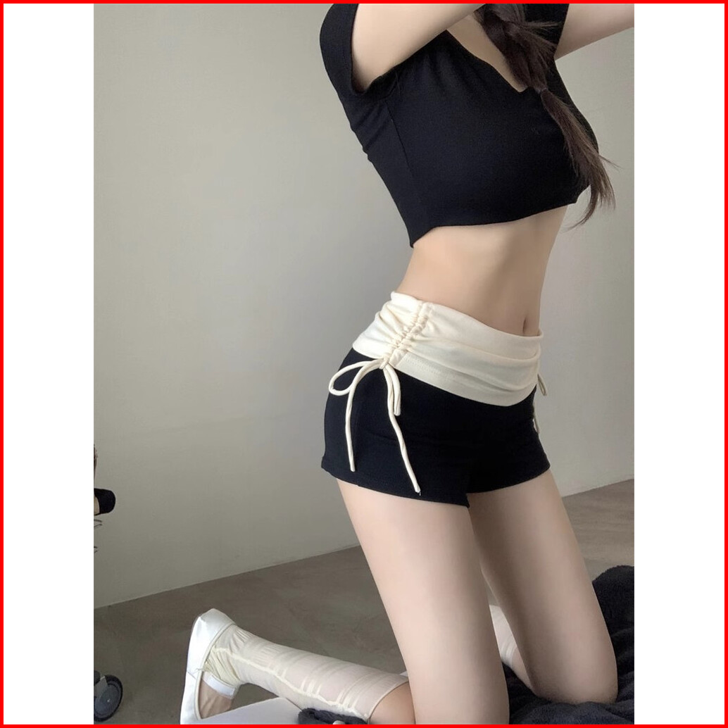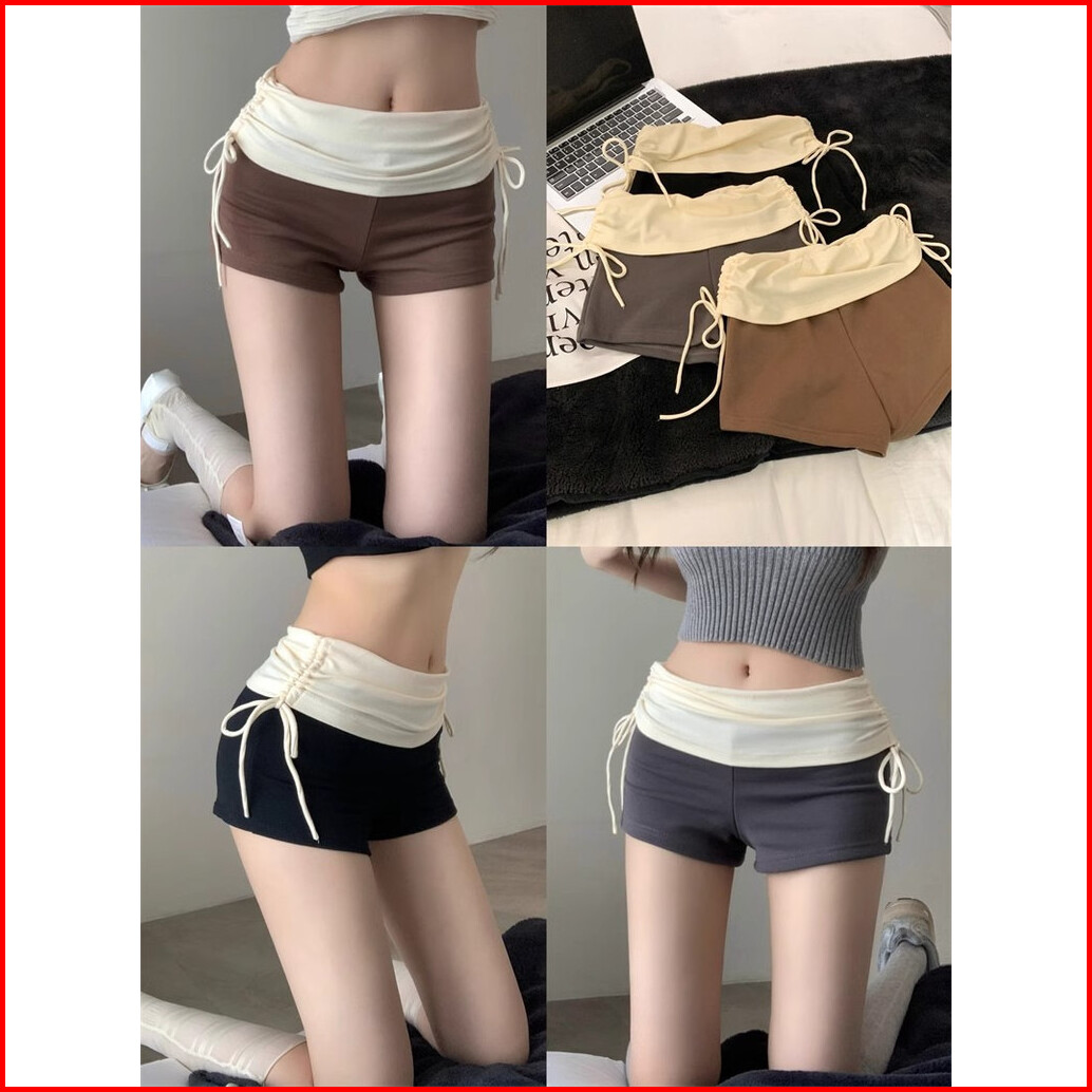 Celana Pendek Wanita Korea High Waist Drawstring Colorblock Slim Fit Sexy Elastis Hotpants