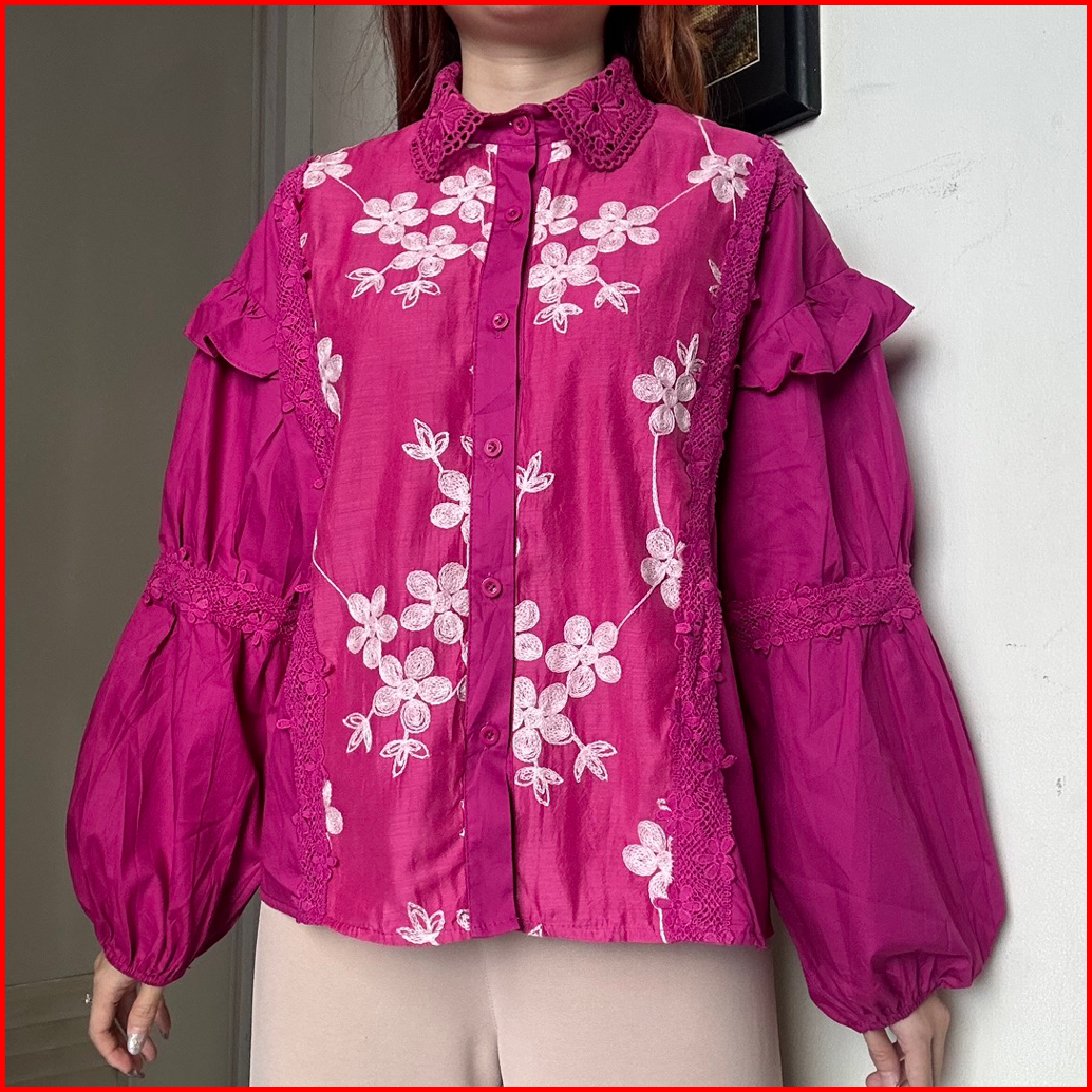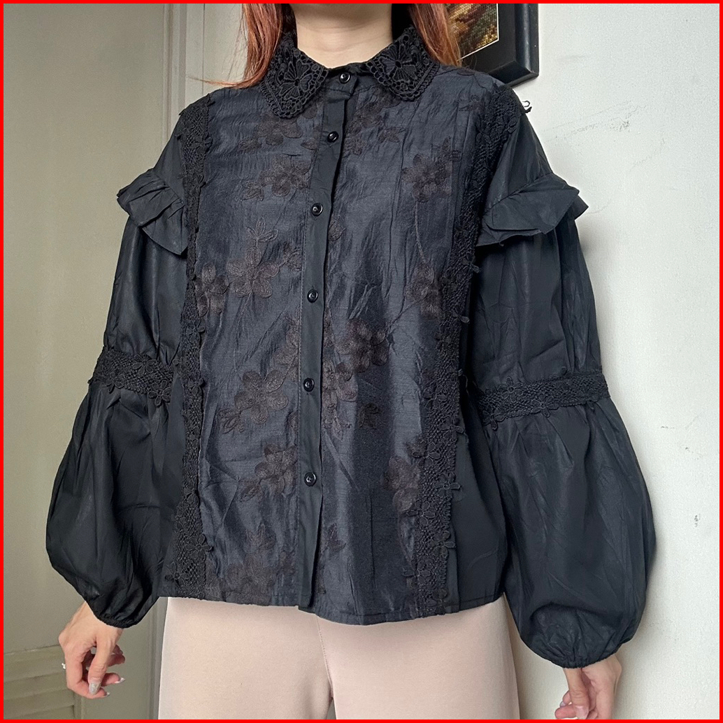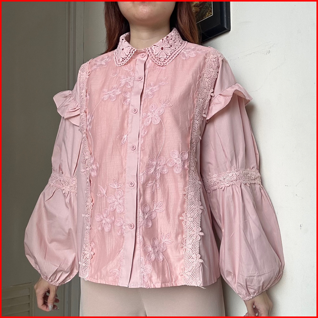 Dilan Top Atasan Blouse Kemeja Wanita Katun Bordir Renda Kerja Korean Style By Biel The Label