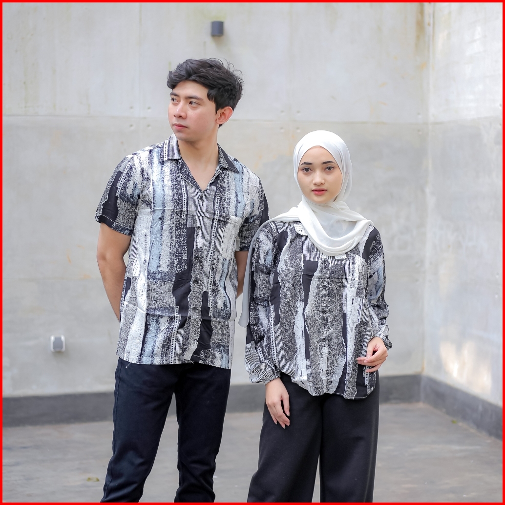 Baju Kemeja Couple Pasangan Remaja Terbaru Motif Pantai Rayon Abstrak Busui