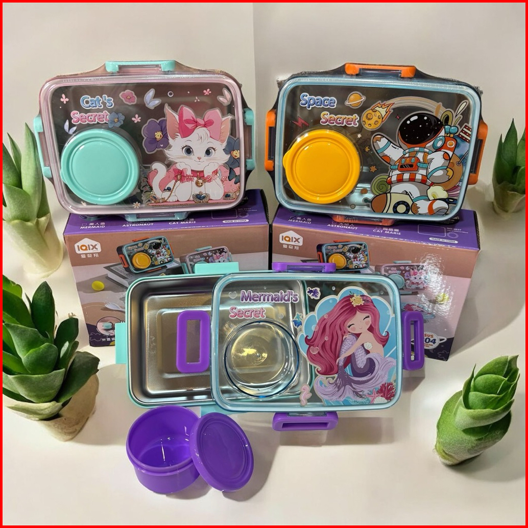 Lunch Box Stainless Steel Bpa Free Kotak Makan Bento Anak Premium Mermaid Astronot Cat Marie Sus 304 600ml Bowl 80ml 1 S