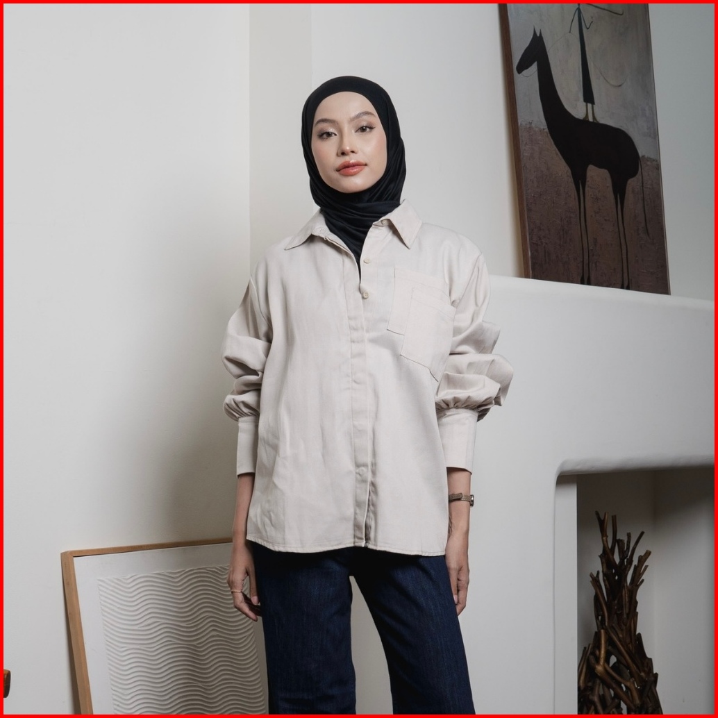 Asoka Posy Shirt 3169 - Atasan Wanita Kemeja Semi Jeans - Oversize Women Shirt Pocket Long Sleeve