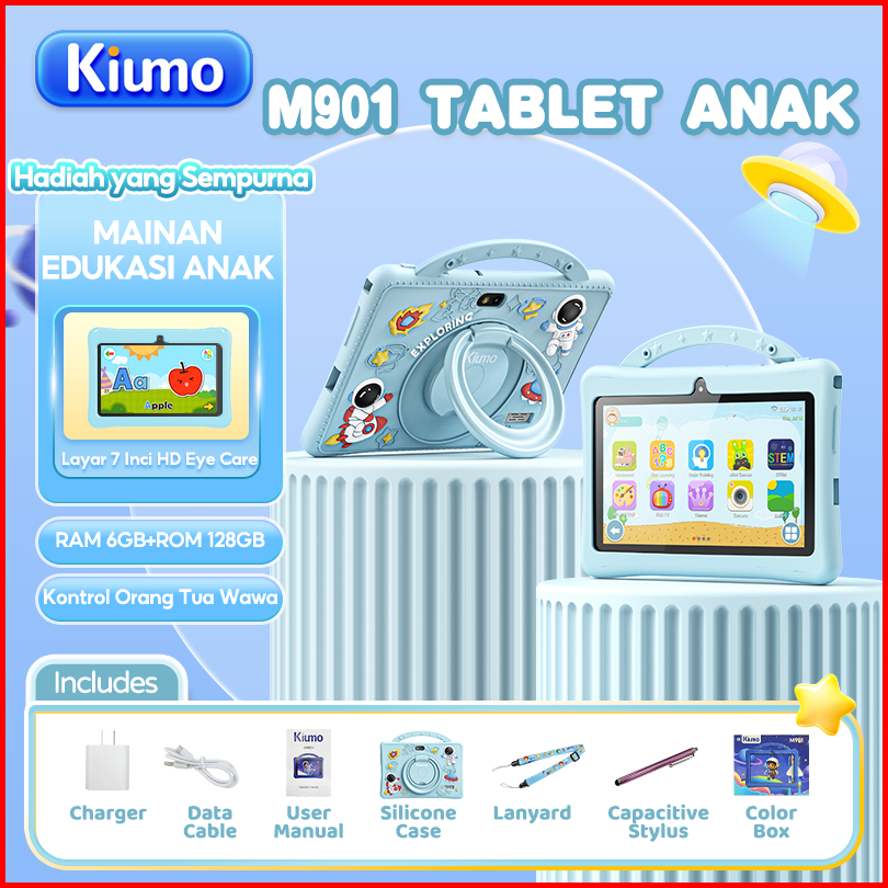 Kiumo M901 Tablet Anak Biru Muda 6 128g 7-inch Tablet Edukasi Anak Android 13 3200mah 1024x600 Resolusi 2 Camera Tablet