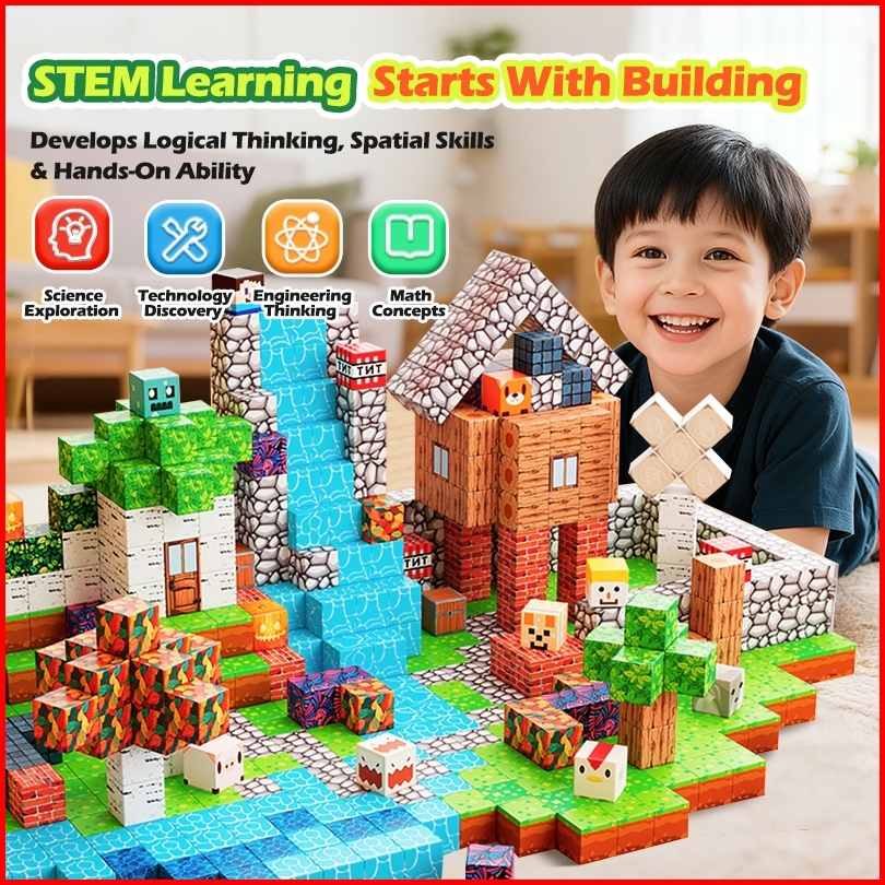 Kiumo Magnetic Building Block Set Magnetic Block Magnet Diy Magnet Puzzle 50pcs 100pcs 200pcs Mainan Anak Laki Laki Pere