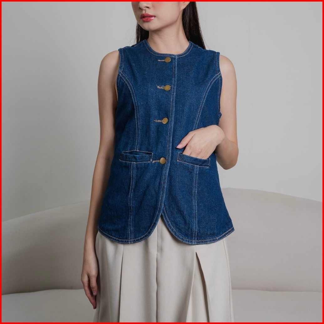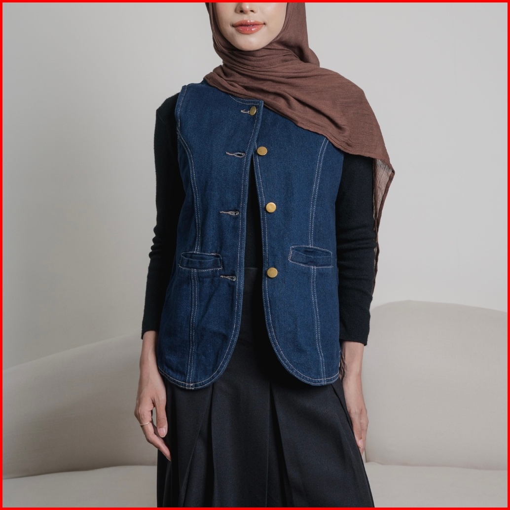 Asoka Cessie Vest 1740 - Sleeveless Denim Vest Button Woman - Atasan Wanita Rompi Casual Look