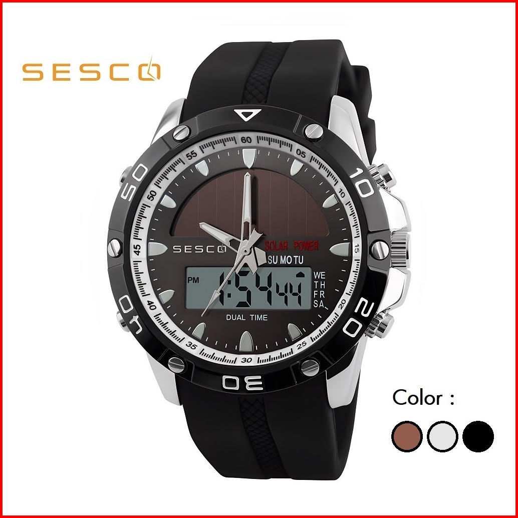 Sesco 1064 Jam Tangan Pria Cowok Digital Analog Original Dengan Tali Karet