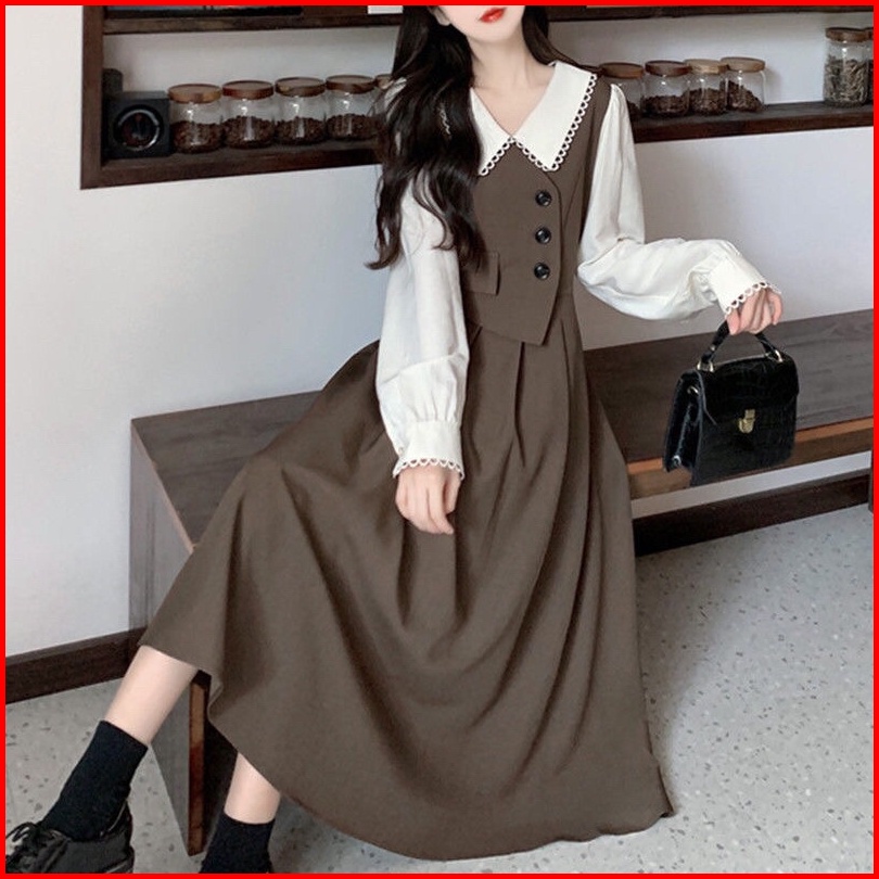 Midi Dress Collar Vintage Ala Korea Dress Lebaran- G019
