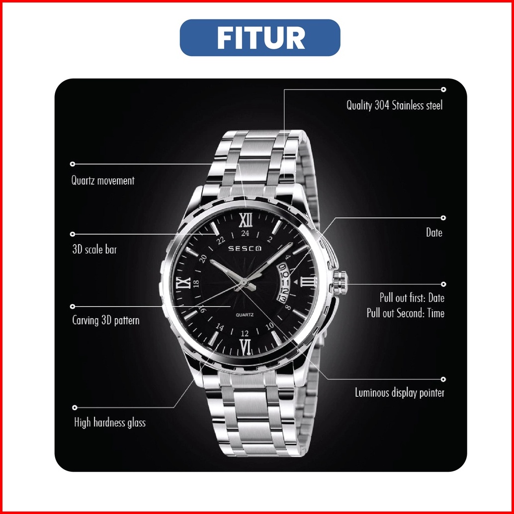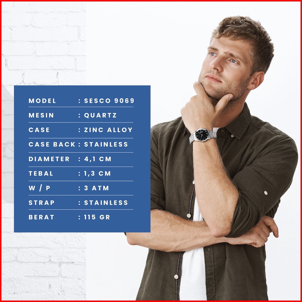 Sesco 9080 Jam Tangan Pria Cowok Digital Anti Air Original Dengan Stainless