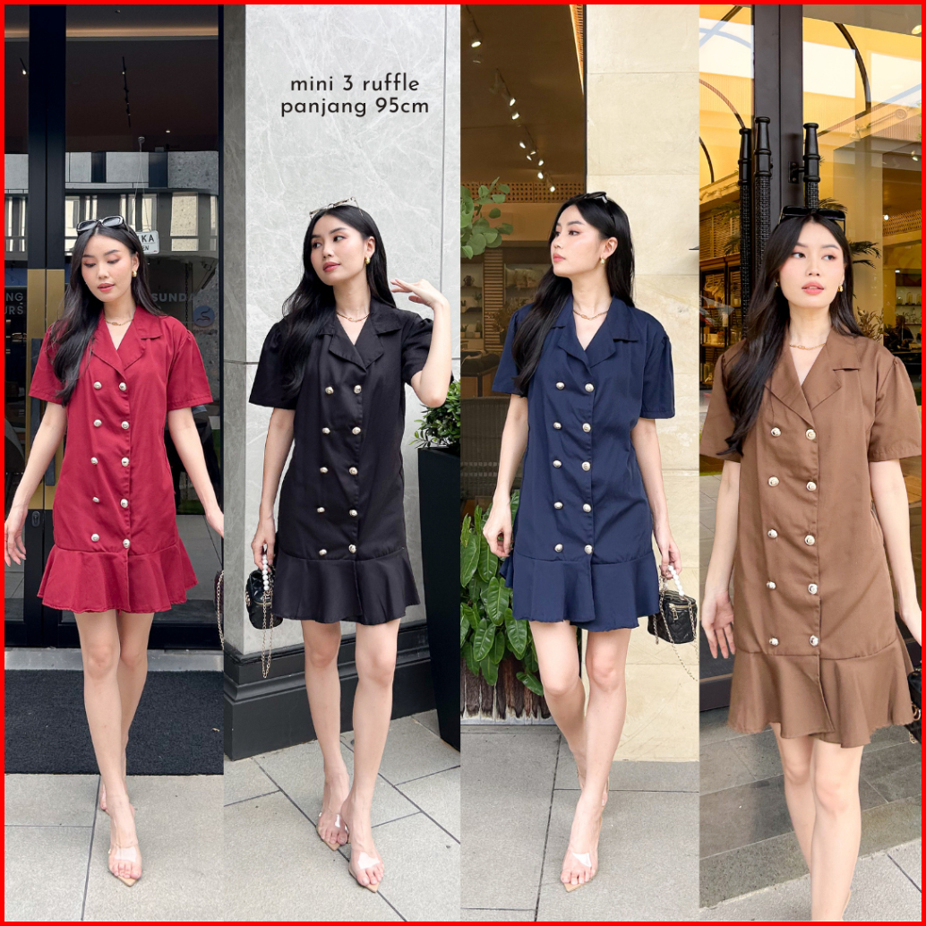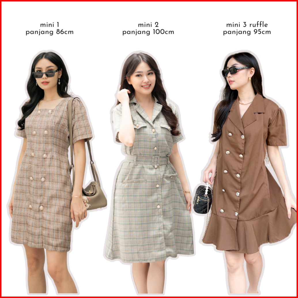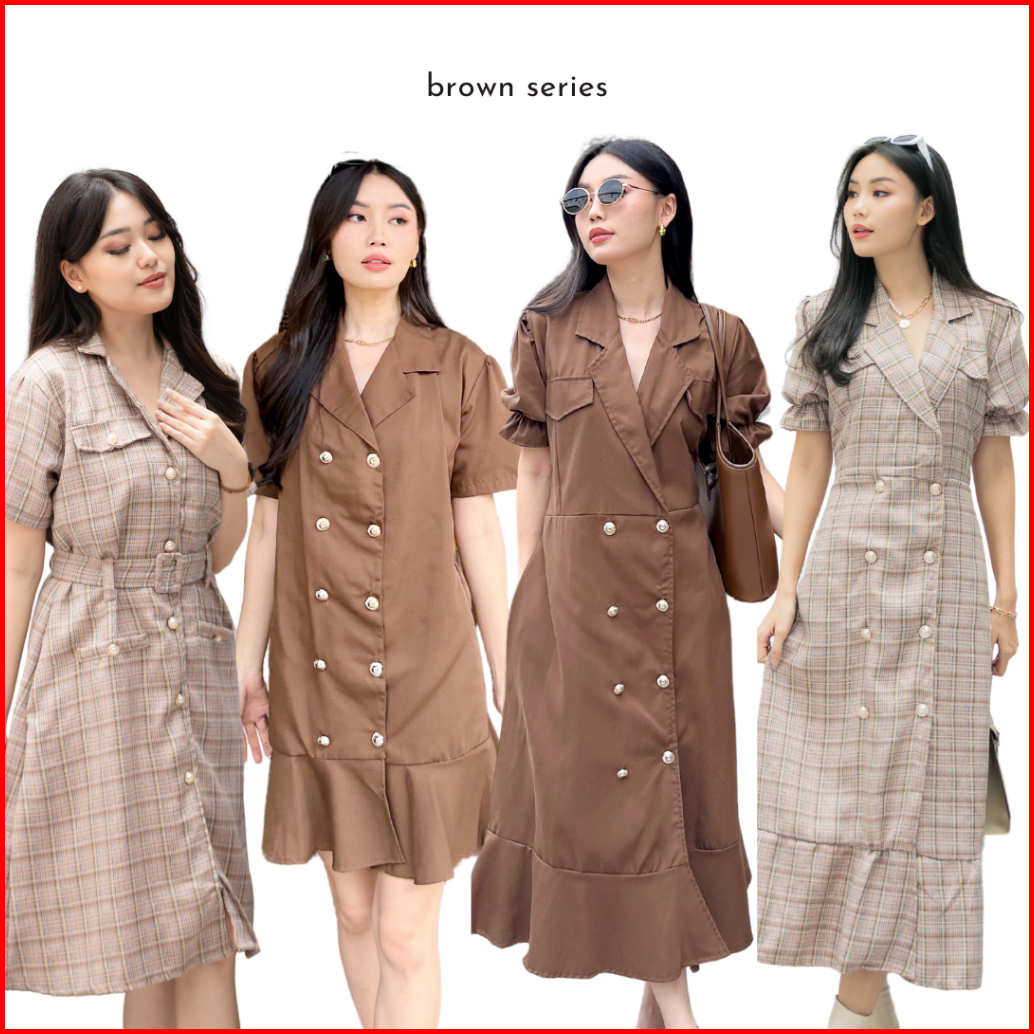 Rachel Midi Dress Outfit Kantoran Tweed Premium Slim Fit Collar Casual Busui Friendly