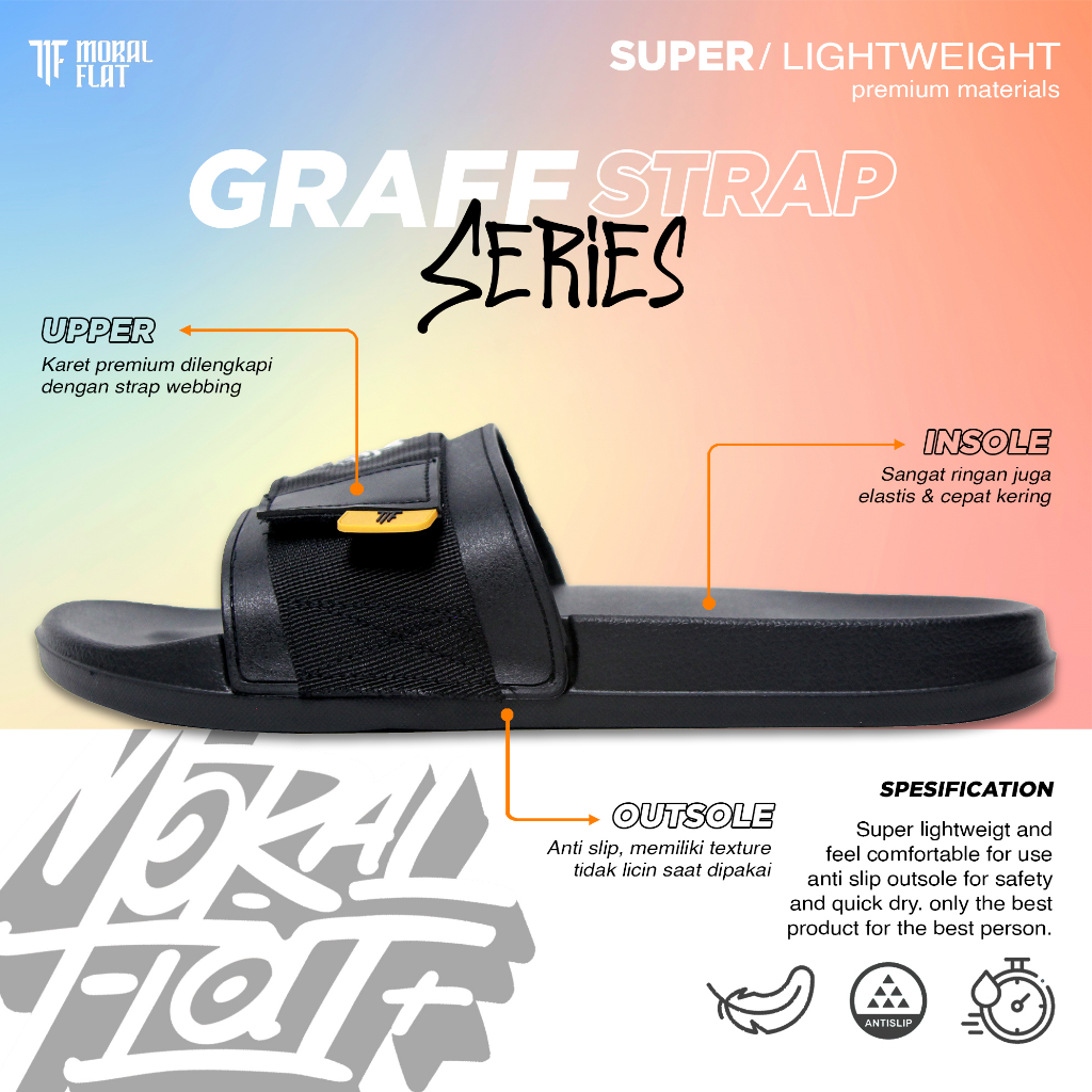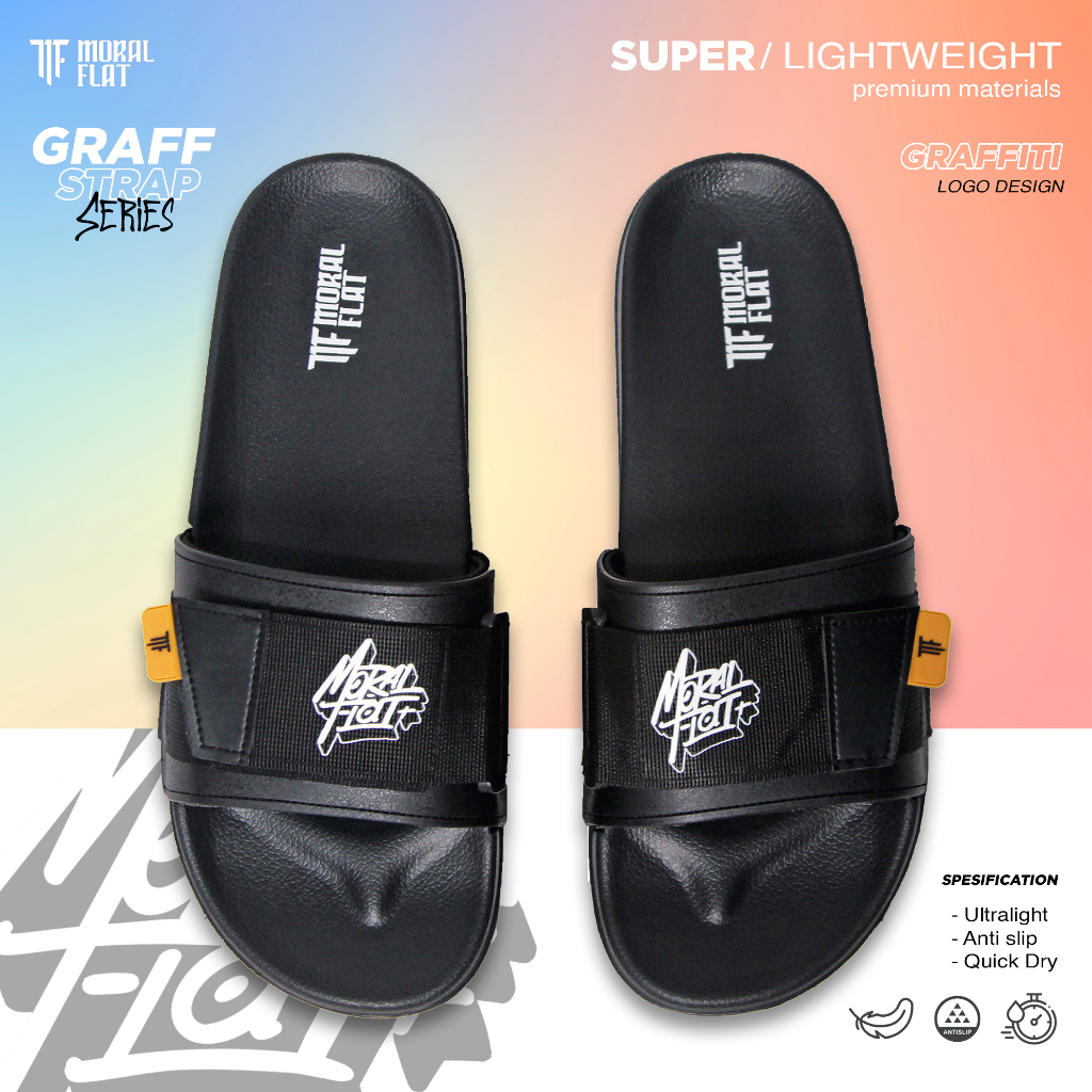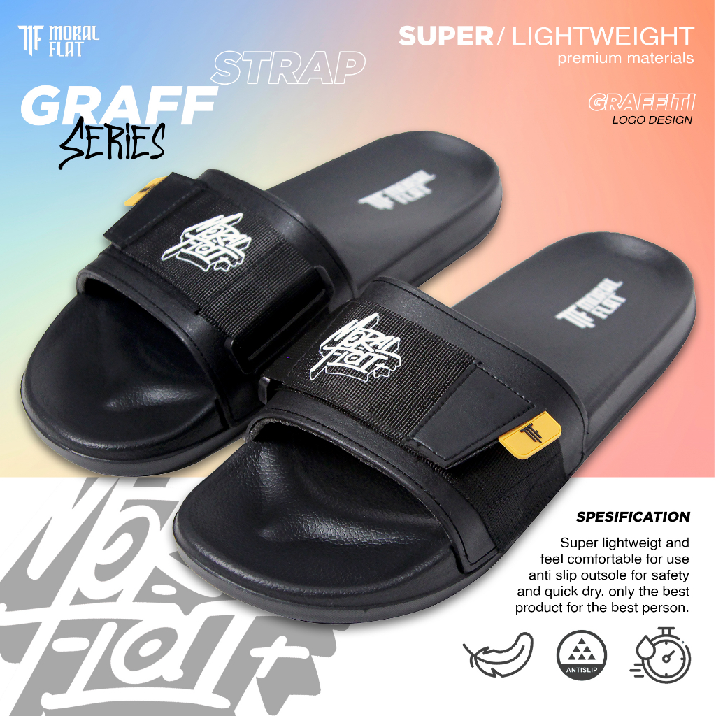 MORAL FLAT SANDAL SLOP-SANDAL PRIA-PEREKAT CASUAL/UNISEX-MF GRAFF STRAP FULL BLACK