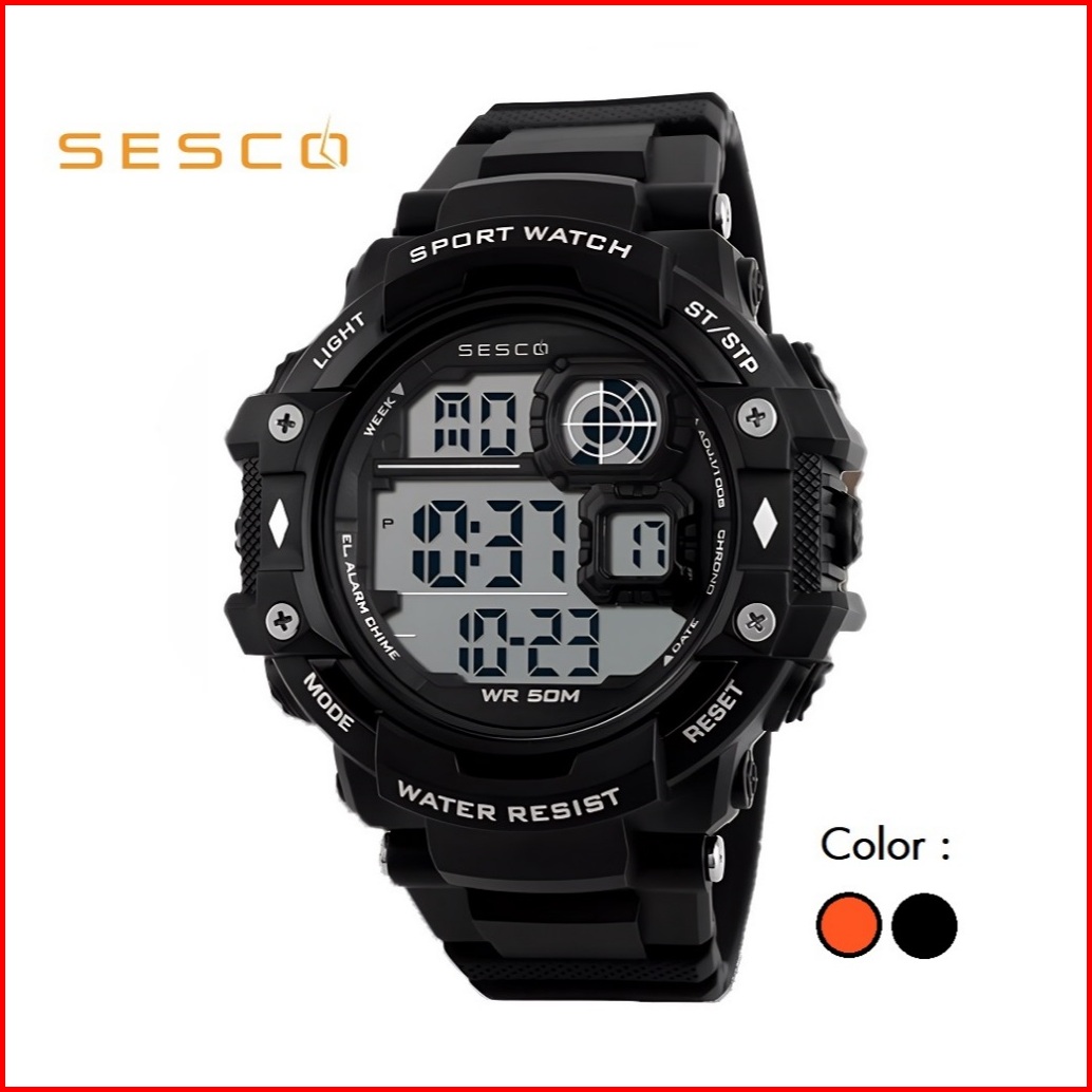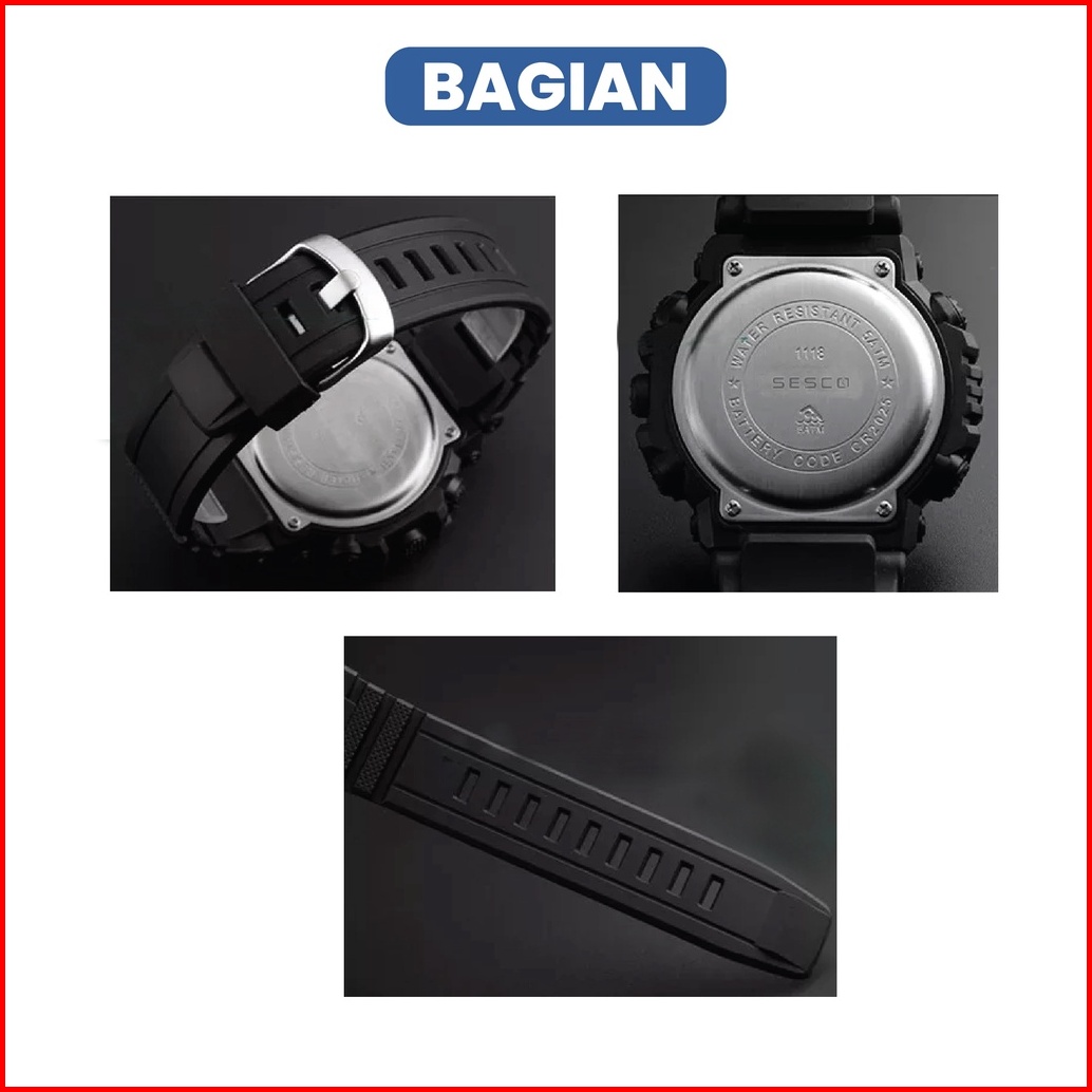 Sesco 1118 Jam Tangan Pria Cowok Digital Anti Air Original Dengan Tali Karet