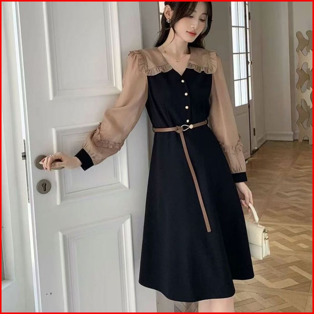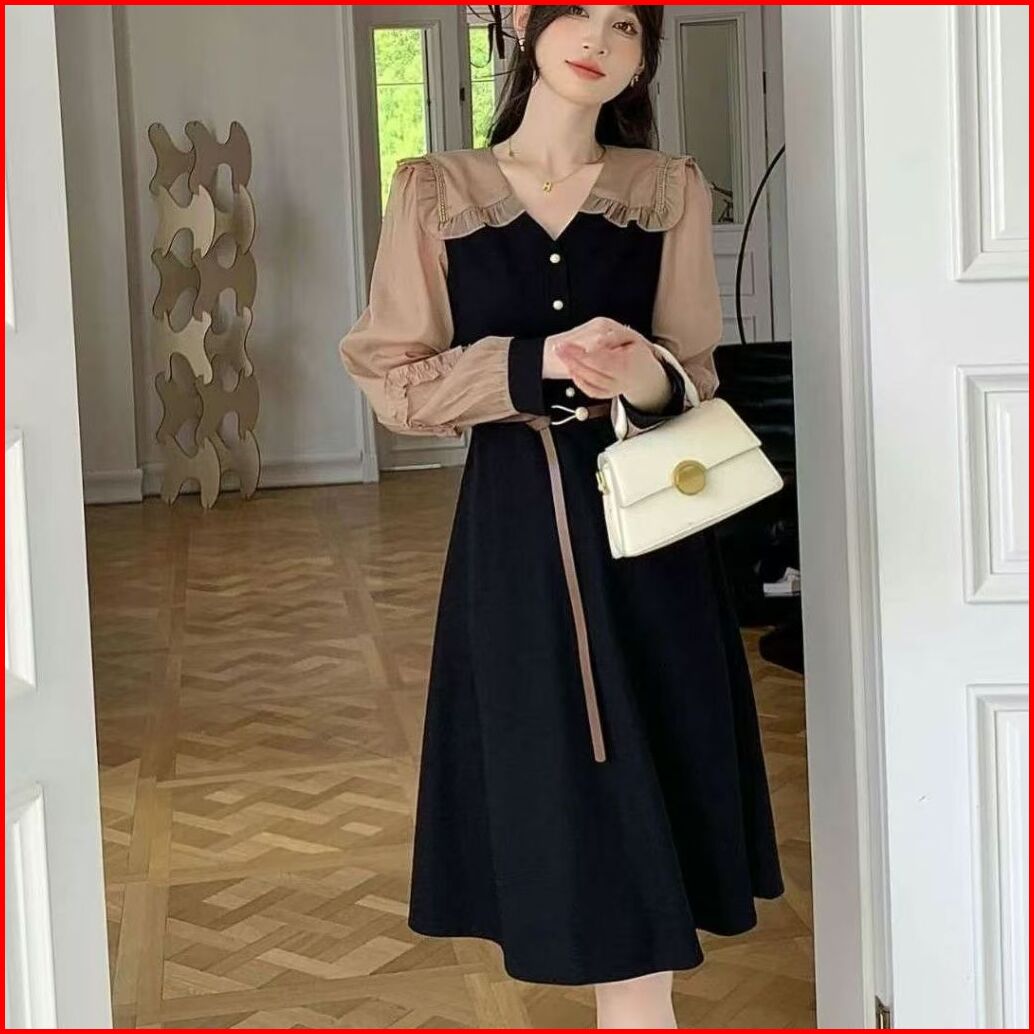 Midi Dress Hitam Lengan Panjang Poliester L-4xl