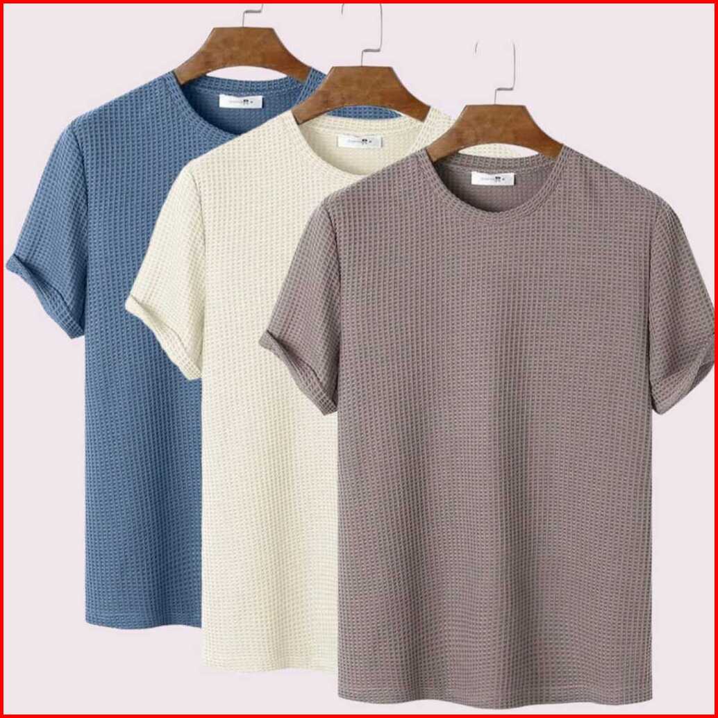 Nio - Paket 3pcs Kaos Waffle Knitt Polos Lengan Pendek