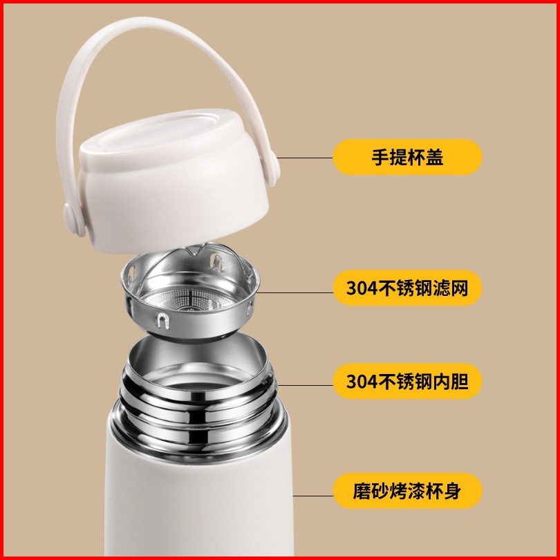 Tumbler Termos Hot Cool 350 Ml Dengan Saringan Dan Handle Portable Vacuum Cup Insulated Bottle Stainless Steel 304 Coffe