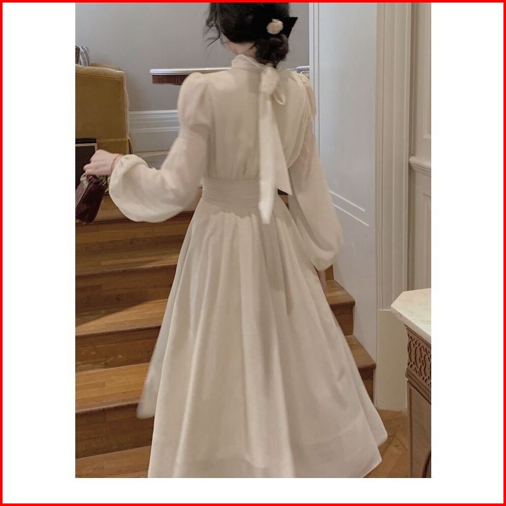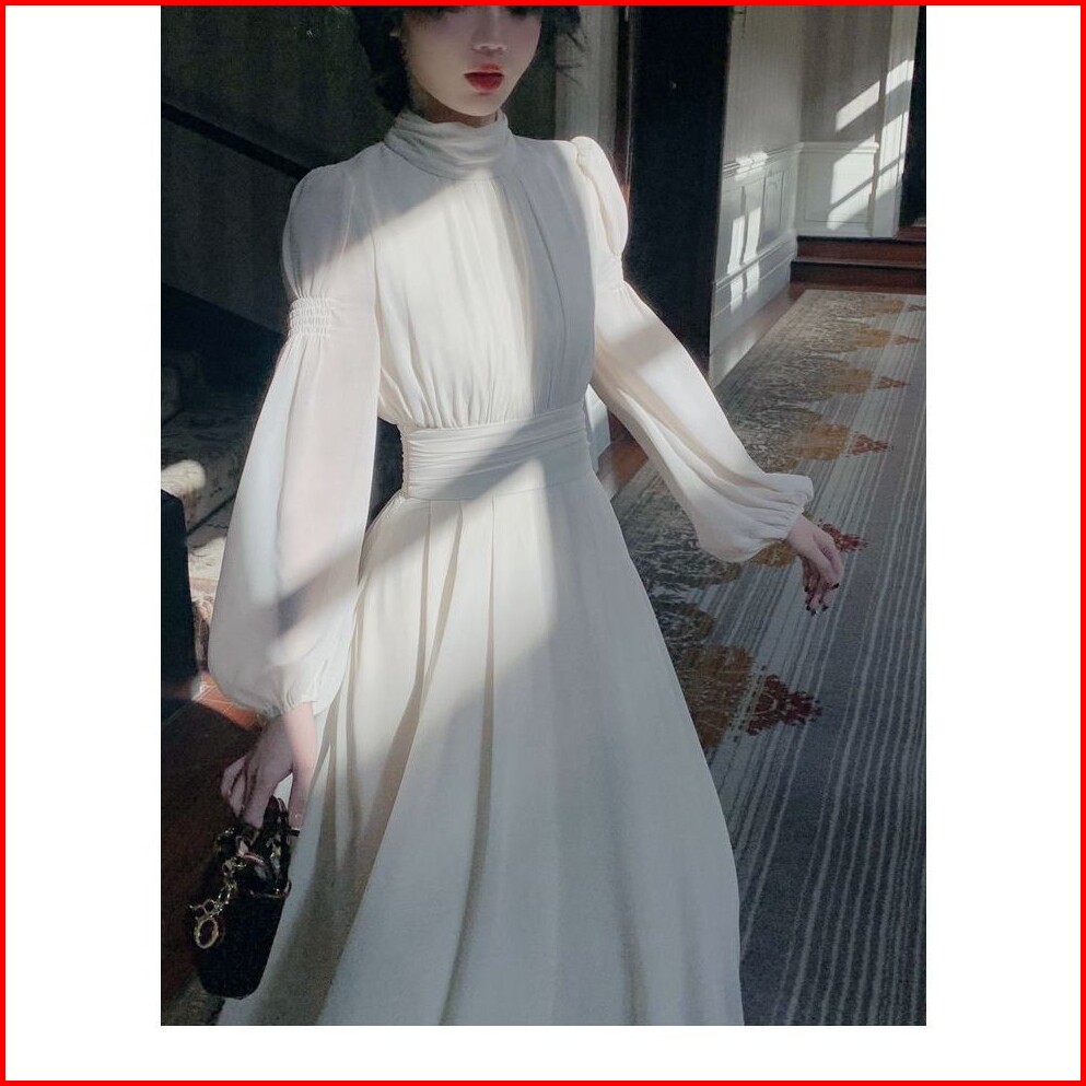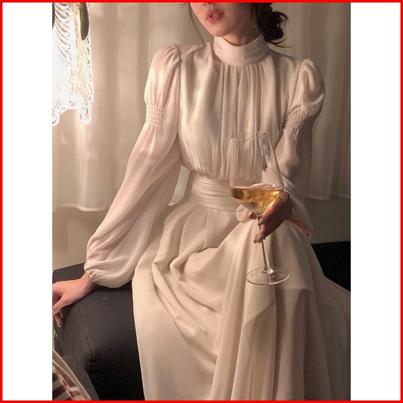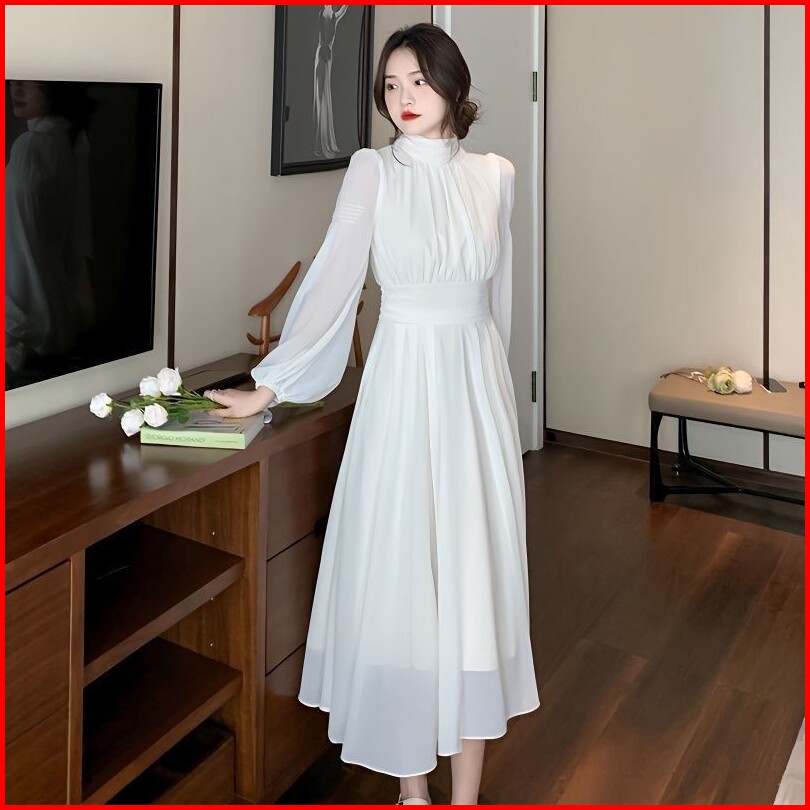 Lynn Korean Midi Dress White High Collar D148