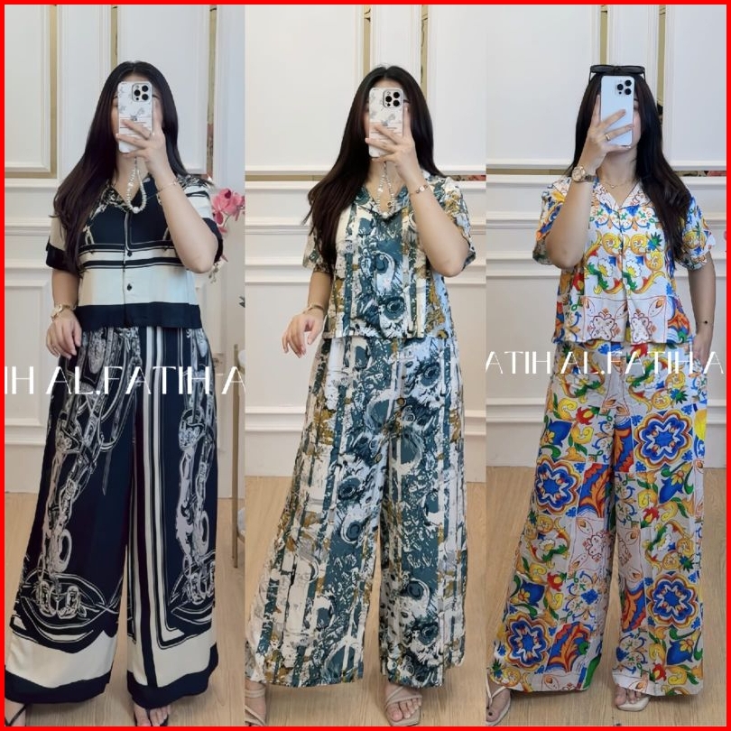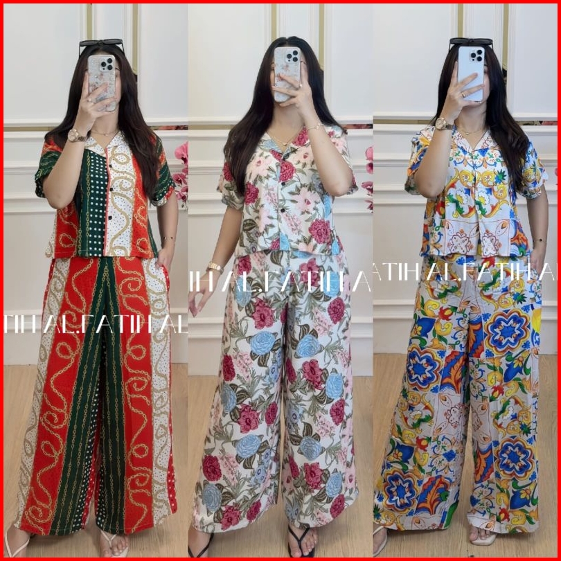 New One Set Crop Setelan Celana Kulot Wanita Hightwaist Rayon Premium Busui Friendy Bb Max75kg