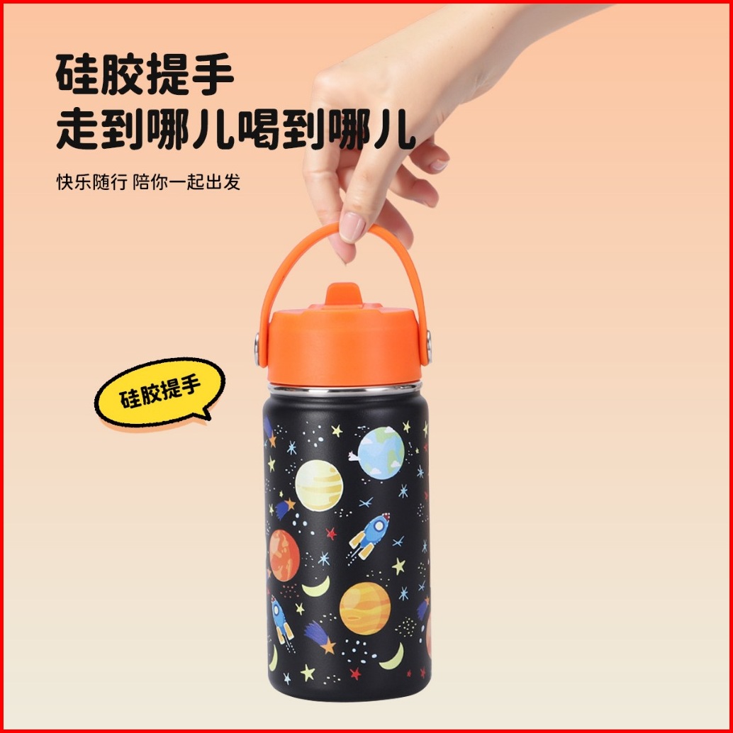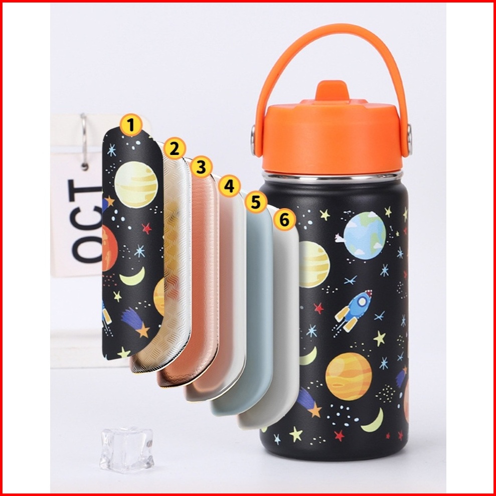 Tumbler Flip Straw Termos Karakter 350 Ml Botol Minum Anak Dewasa Dengan Sedotan Dan Handle Vacuum Cup Insulated Bottle