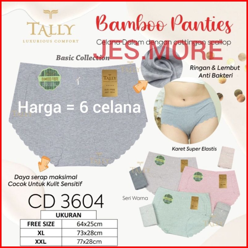 3pcs Dan 6pcs Tally 3604 Cd Celana Dalam Wanita Seamless Bahan Katun Bamboo M - Xxl