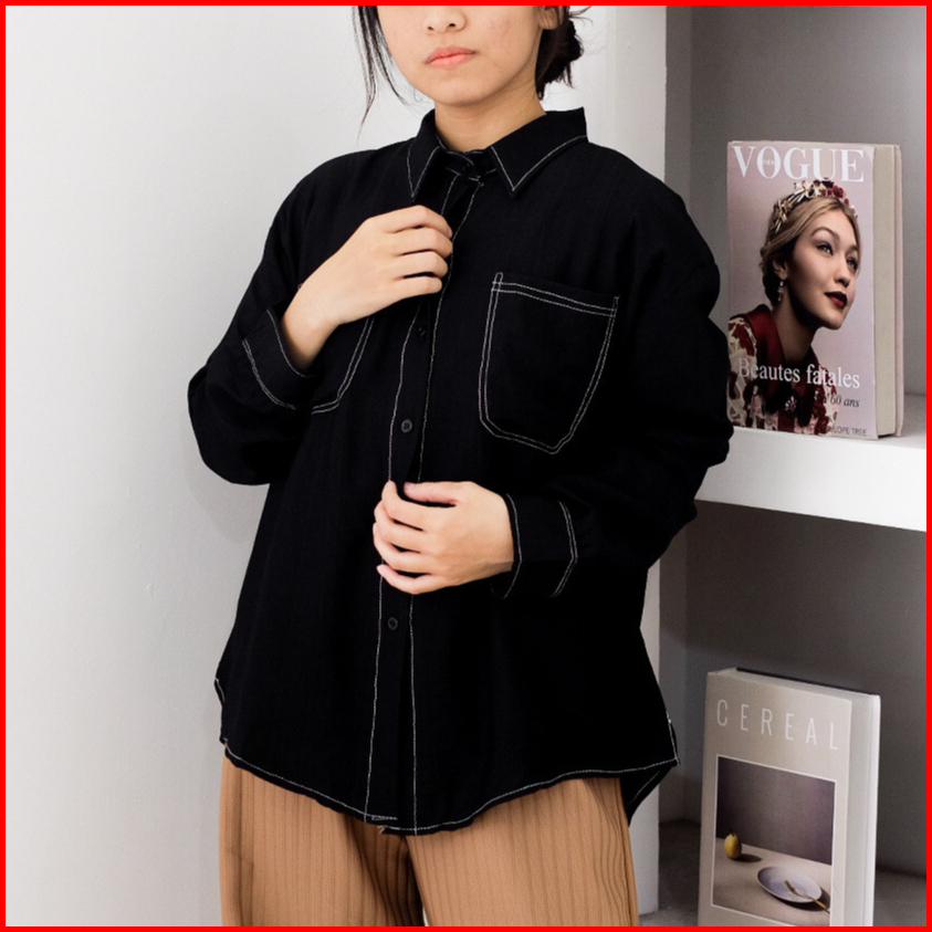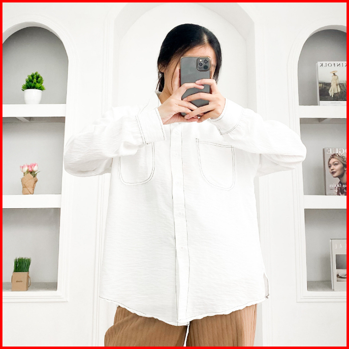 Ruby Shirt Top Atasan Kemeja Wanita Oversize Fashion Remaja Kekinian Basic Casual Daily Matt Polo Linen