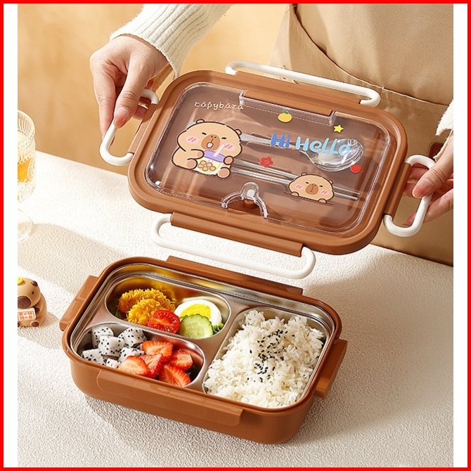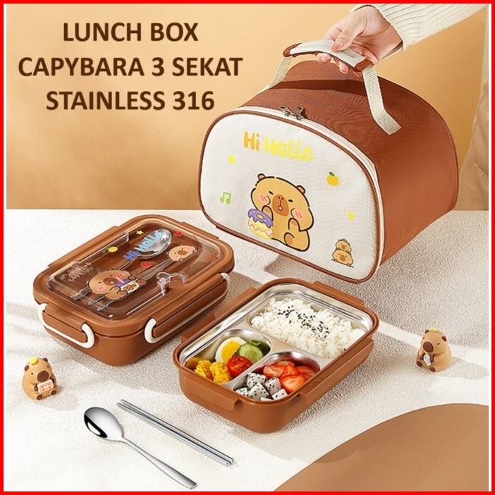 Lunch Box Viral Kekinian Capybara Stainless 316 Kotak Makan Sekat Tahan Panas Dan Anti Tumpah Tempat Makan Bekal Anak Se