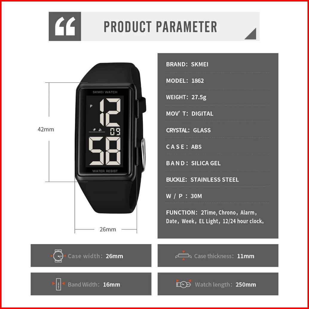 Jam Tangan Pria Digital Skmei - 1862 - Black Black Water Resist30m